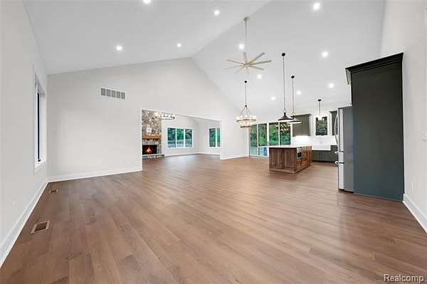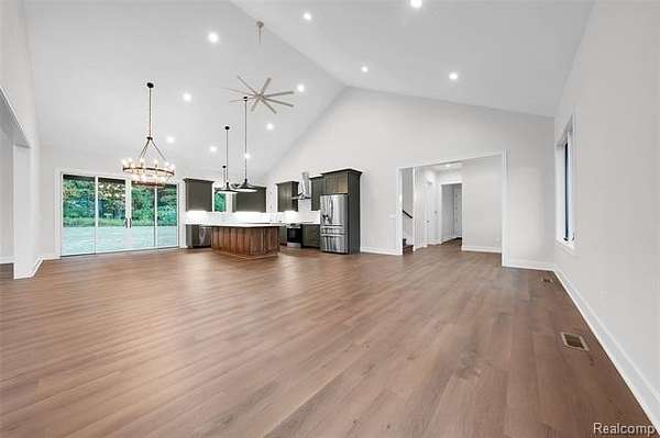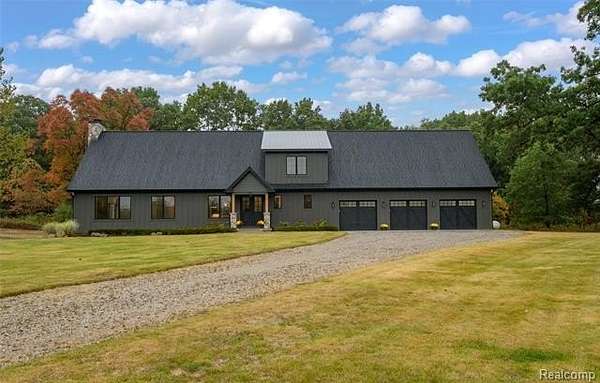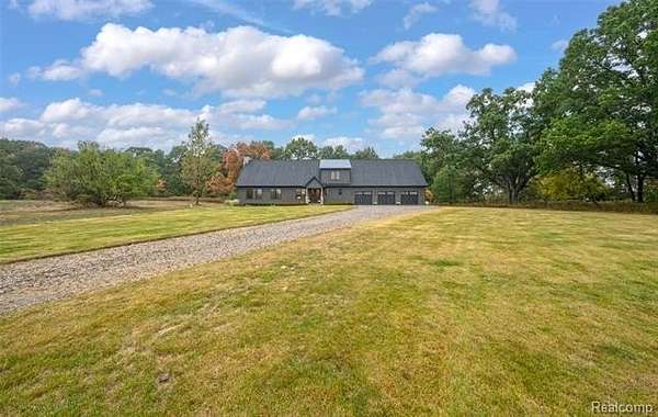 NOTE: some GPS directions are incorrect. N Milford Rd. (NofM59) to W Wardlow Rd. to N on Percy Lane to end of cul-de-sac) Custom New Build without the wait!! This Barndominium style home has it ALL! This home sits on 3 acres, sod with sprinklers in front, edges of property are left natural landscaped. Property is larger than mowed areas. This gorgeous home features an enormous, open concept Kitchen, Dining and Great Room. Custom cabinetry throughout with high end finishes. Kitchen features include beautiful custom, dark sage-green cabinets with white quartz countertops with golden accents. 8 foot island can accommodate pull-up seating for quick dining. Top of the line Stainless Steel Appliances with microwave tucked in the island cabinetry. Large, walk-in pantry right off kitchen. Dining room area can fit large farm-style table for formal dining. Great room off the kitchen/dining areas can be used for extra seating, study/reading nook etc. The adjoining family/sun room is the highlight of this home. It has numerous windows for natural light with countryside views, floor to ceiling stone fireplace as its centerpiece and large enough to accommodate big furniture pieces and family/friend gatherings. Primary bedroom with en suite is on main floor. Bath has floor to ceiling tile work and rain shower head. Two large bedrooms upstairs with Jack and Jill bathroom. Ample Closet storage upstairs. Covered back Patio has wood ceiling with lights and ceiling fan with views of the woods. Basement is plumbed and ready for bathroom install, has an egress window for possible future room and has numerous finishing possibilities. Garage is about 1400+sq.ft. and has 3 (10ft) doors that are super quiet and room for 6+ cars, and/or a lift, LED lighting and fog lights inside on wall to see in trunks, security cameras connected to private server and plumbed for gas. Home also has outside security cameras connected to private, hard-wired server. Taxes are NonHomestead and will be less.
