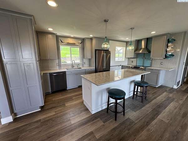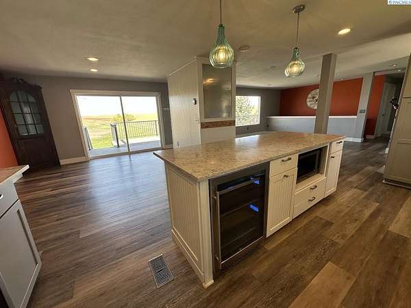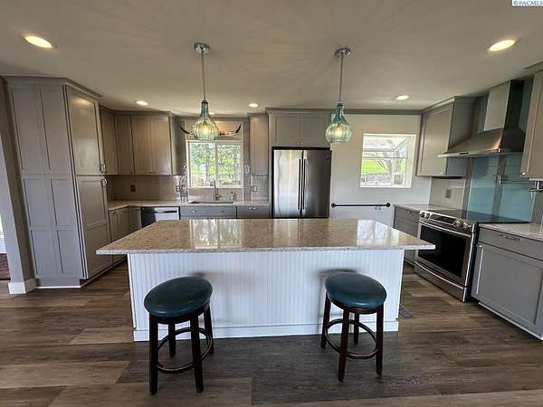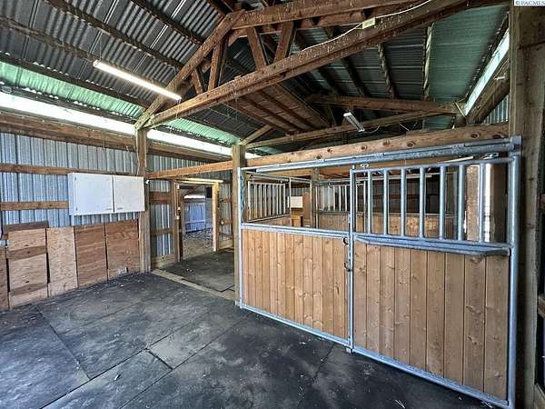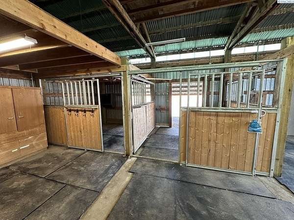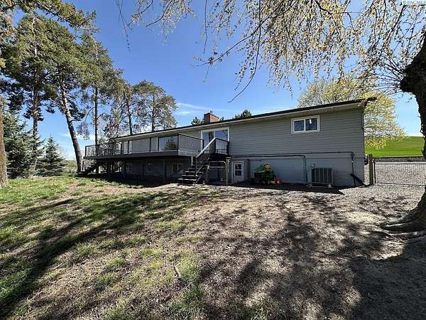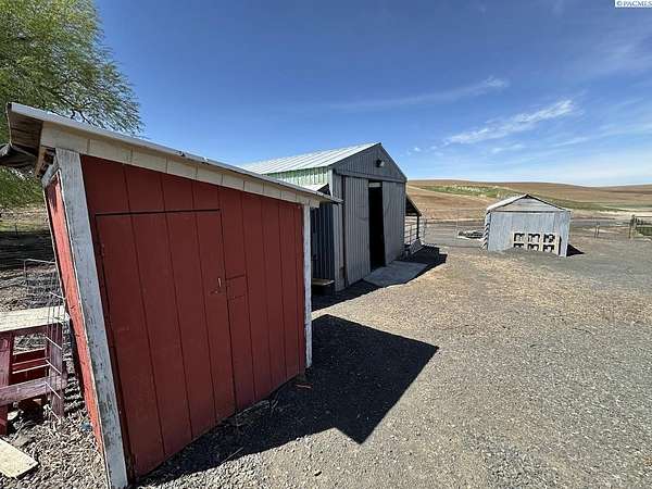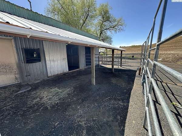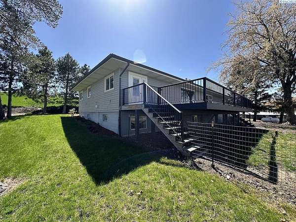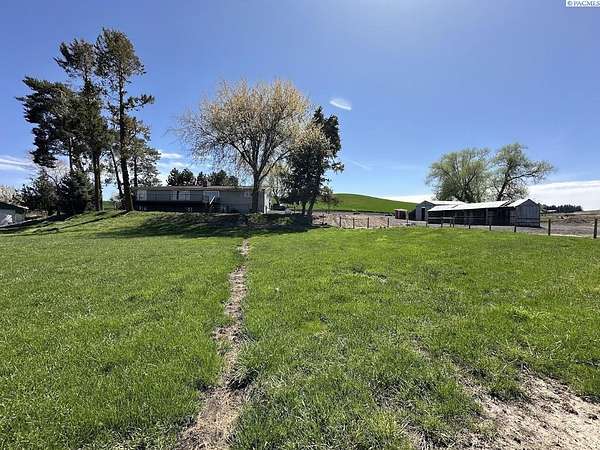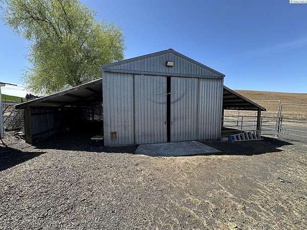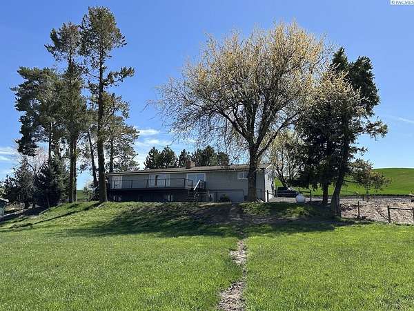 Rare opportunity! This rural oasis on 10.7 acres is nestled in the heart of Whitman County, just minutes from downtown Pullman! The stunning updated mid-century home offers ample space inside and out, boasting 2,927 sq. ft. perfect for entertaining and family gatherings. The spacious main level offers an amazing open concept kitchen-living-dining space featuring stainless appliances, composite stone counter tops, and a custom island with wine chiller and bar seating, complimented by a gas fireplace; all leading out to an impressive composite deck with piped in LP gas for your grill, overlooking the fenced pasture with sweeping views of the iconic rolling Palouse hills. The lower level offers the flexibility to function as a duplex, home business, or mother-in-law suite with private egress and separately metered power. The space features a second living room, wood burning fireplace, full kitchen, pantry, 2 bedrooms w/egress windows, a full bathroom, laundry, and mud room with an additional unfinished 3/4 bath. Stay comfortable year round with central HVAC, while the rooftop solar system helps to significantly offset rising utility costs. Enjoy a low maintenance exterior wrapped in vinyl siding and windows, surrounded by a landscaped yard featuring a sprinkler system and mature trees, with plenty of space to park, as well as a 1 car attached garage. Most importantly, this property is move-in ready for your four legged friends, the 20’ x 30’ horse barn offers separately metered power, and lean-to’s on both sides with pens for small animals as well. An additional 14’ x 45’ hay shed provides ample space for your feed and equipment storage needs. The sprawling sub-irrigated pasture is fully fenced, and offers a leveled area prepped for an arena. These opportunities are rare and do not last. Schedule your appointment today!