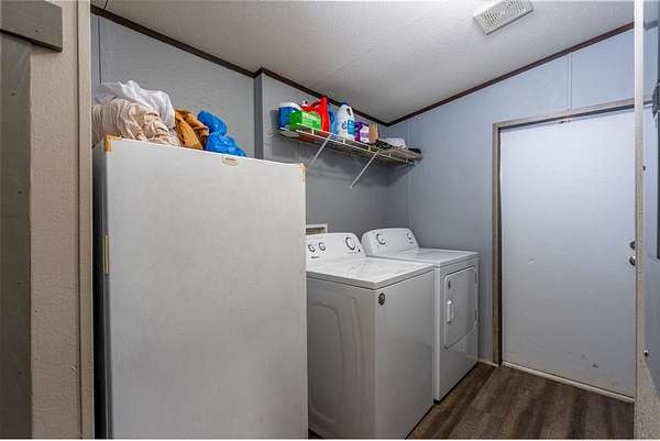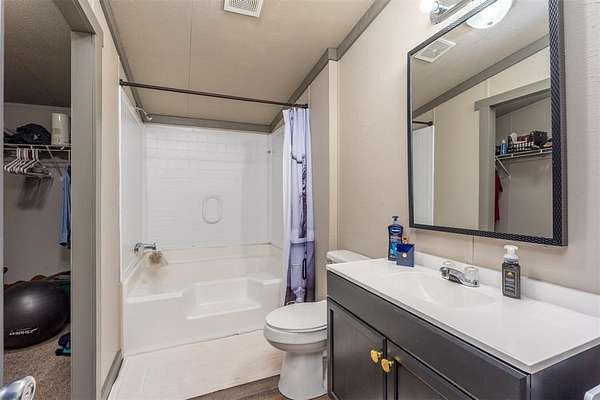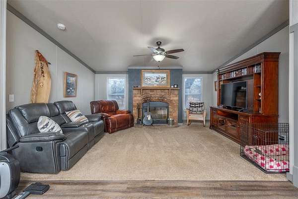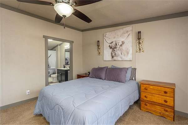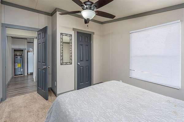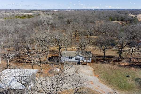 Meticulously-maintained and Move-in ready, this 2016 double-wide manufactured home offers peaceful country living with privacy and convenience on 5 acres m/l. The three-bedroom, two-bath home features an open floor plan, fresh interior paint and trim, and a nice-sized utility room designed for everyday functionality. Nestled among mature trees on a dead-end road, the property provides exceptional privacy and property is fully-fenced with new fencing and pipe entrance-ready for livestock. A small pond enhances the serene setting, while the wooded landscape provide the perfect opportunity to enjoy and explore the scenic outdoors, including riding ATVs or walking through the trees. A standout feature is the impressive professionally-built 30x40 shop built in 2023, complete with a cement floor, electric, spray-foam insulation, 2 overhead doors, 1 walk-through door and a 10x40 covered porch. On the north end of the shop's carport is a custom-built, covered 10x10 dog pen, offering a convenient and sheltered space for pets. The shop provides ample room for tools, equipment, and recreational toys. A storm cellar located just outside the front door offers added storm safety, peace of mind, and convenience just steps from the door of your home. With no restrictions and no HOA, this property allows flexibility and freedom. Conveniently located just outside of Shawnee in the Bethel Acres area. The property is approximately 30 minutes from Midwest City, easy access to Interstate 40. This secluded property is ideal for those seeking privacy, functionality, and country living surrounded by beautiful mature trees. The manufactured home was professionally secured to the land by the dealership when purchased. The property is supplied with Canadian Valley electric, Canadian Valley fiber internet, and Pottawatomie County rural water district 2. Buyer to verify information.