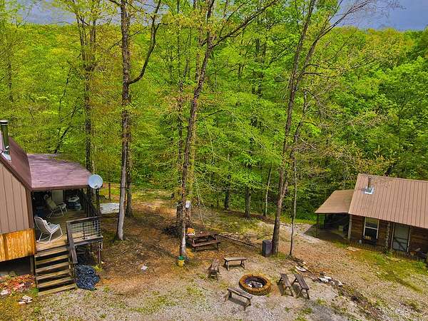 A secluded area with creeks and streams, 2 Small Cabins, on 5 acre tract. lot with a Finished cabin plus a bonus livable structure is the idea get away from everyday life. Surround by nature this property has plenty of riding trails from ATV's or horses, plenty of hunting and has a Creek on three sides.