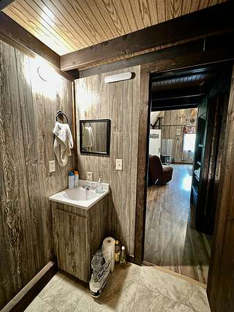 from main street, turn on East 92 (Michigan Avenue), Travel 2.4 miles and turn left on 776.Turn left on Raleigh Creek East Rd in 6.5.drive 0.6 miles until you dead end at the Creek drive approximately 50 ft in Creek bed and the road turns right up the hill, stay right, road ends at cabins. Note; recommend to drive through the Creek at the bridge, all Creek beds are solid and safe.