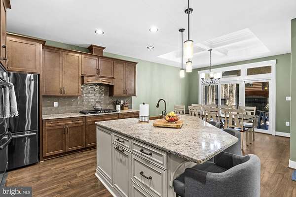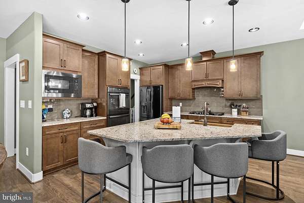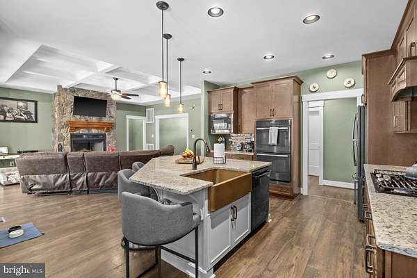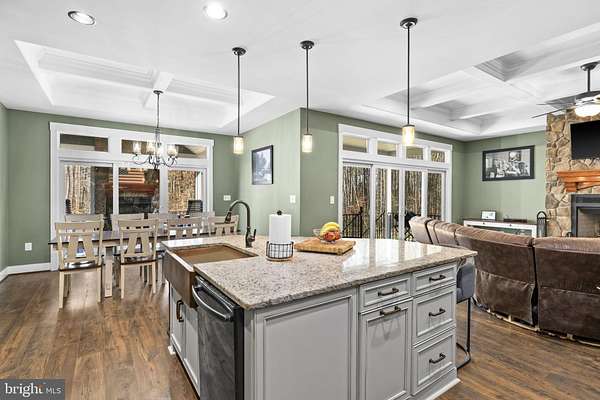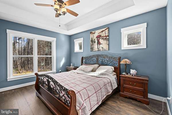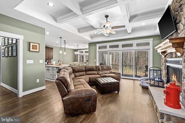 A stunning Craftsman-style home built in 2019 by Spartan Homes - loaded with upgrades and perfectly positioned as your Lake Anna water-access retreat. This 5-bedroom, 4-bath home (plus bonus room and private office) sits on a sprawling 5-acre cul-de-sac lot in The Waters at Lake Anna, one of the most desirable communities on the private side of Lake Anna. Life here feels like a resort. Enjoy an in-ground pool, sandy beach, clubhouse, boat ramp, tennis, pickleball, basketball, playground, and more. The community offers 9 day slips plus 11 boat slips available for annual lease. High-speed fiber internet is available, so working or playing from home is seamless. Inside, you'll find over 4,400 finished square feet with an open-concept main level featuring 9-foot coffered ceilings, durable LVP flooring, and a striking stone wood-burning fireplace. The kitchen was designed for gathering - complete with double wall ovens, a 5-burner gas cooktop, oversized island with seating, granite countertops, black stainless steel appliances, a copper sink, tiled backsplash, and a walk-in pantry. The main-level primary suite features his-and-her walk-in closets, separate vanities, and a tiled walk-in shower with dual shower heads. Two additional bedrooms, two full baths, a home office, and laundry room are also conveniently located on the main level. Upstairs, the massive bonus room with a mini-split system is perfect for a game room, bedroom or additional guest space. The finished walkout basement adds even more room to spread out - featuring a large family room, rec area, gorgeous bar, two bedrooms, a full bath, and plenty of storage. Outdoor living shines just as much as the interior. Relax on the screened-in porch with vaulted ceilings and a stone wood-burning fireplace, enjoy the composite covered deck, and let kids or pets play safely in the fenced backyard. Additional highlights include an oversized finished 3-car garage, paved driveway, whole-house Generac generator, and tankless water heater. All of this in a golf cart-friendly community just minutes from groceries, dining, coffee shops, and local favorites like Lake Anna Taphouse and The Yacht Club. This one truly checks all the boxes.