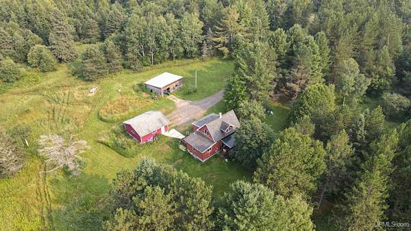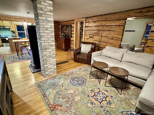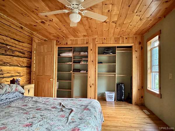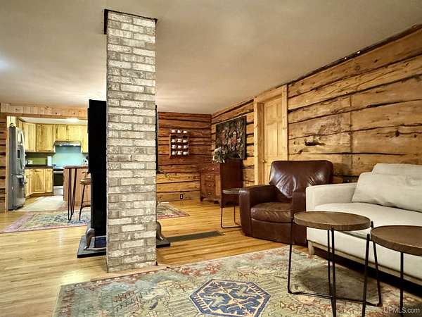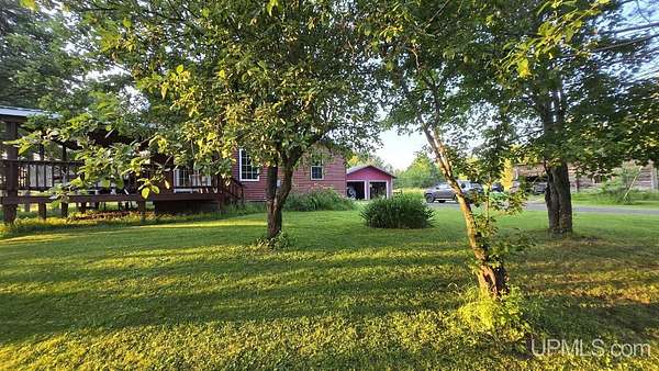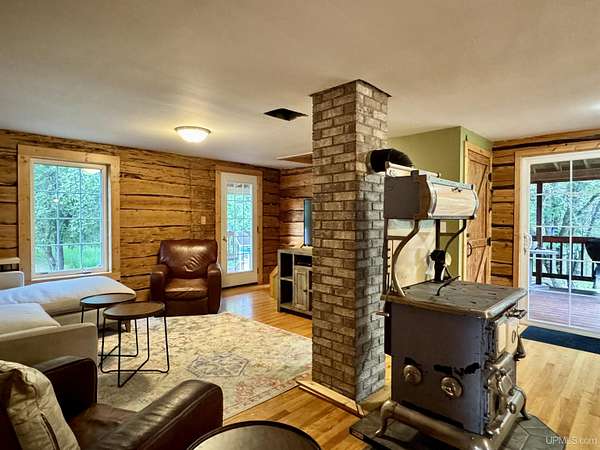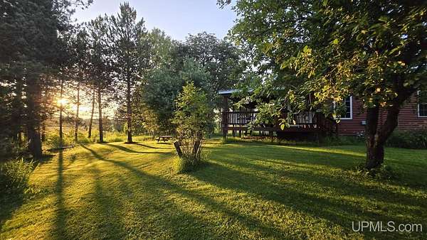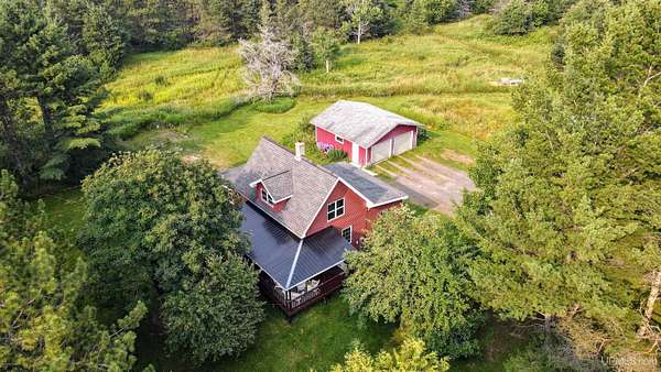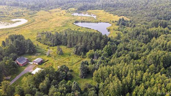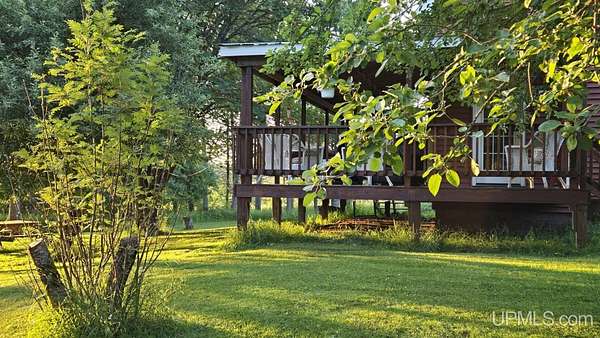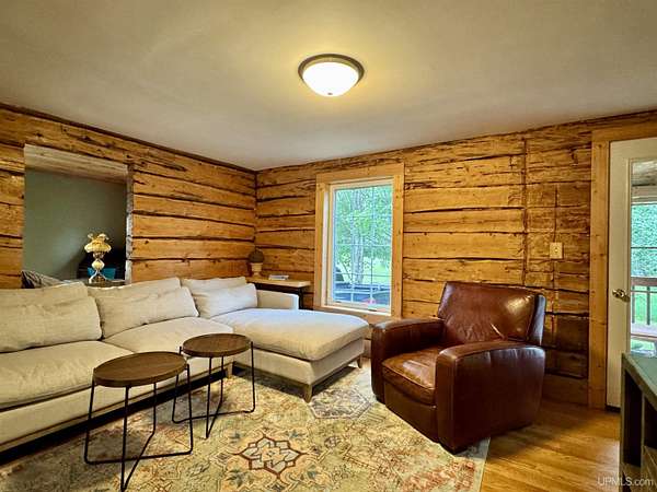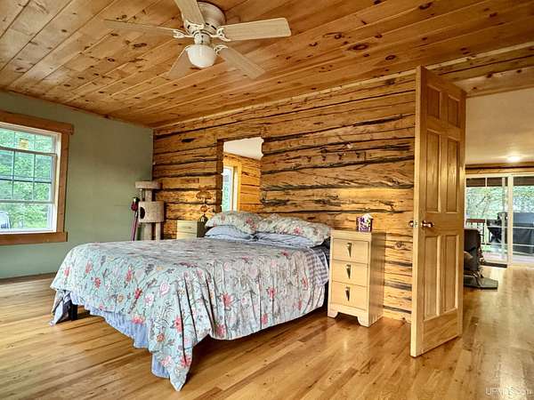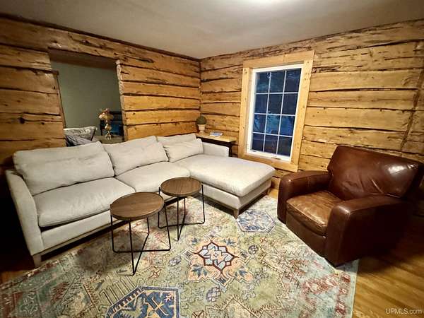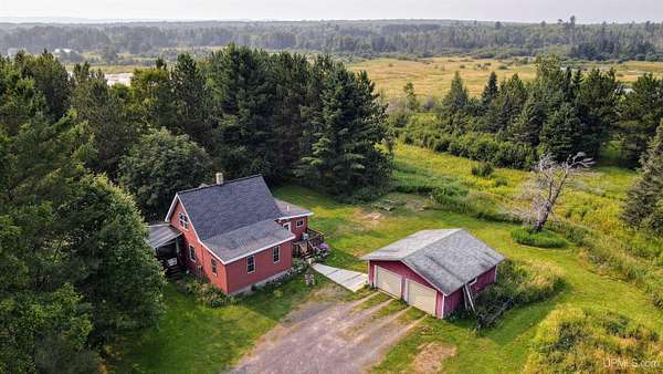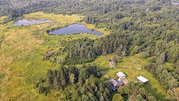 Beautiful hand-hewn log home nestled on 40 acres in Chassell, MI. This charming property has been updated over the years with newer electrical, plumbing, windows, furnace, and roof. The kitchen features a practical and open layout, and the main floor includes a spacious bedroom, making single-floor living a great option. The water to the home is provided by an artesian well which includes a runoff and is some of the best tasting water you will find. Upstairs, the space is open with two distinct sides separated by a closet. On the main floor, there's a sliding patio door and a standard door leading to a lovely 40' covered wrap around deck--a perfect spot to relax, listen to birds, and watch hummingbirds during the golden hour. Most of the 40 acres is a designated bird and wildlife sanctuary, with two ponds that offer an incredible experience, especially in spring when migratory birds return. Sandhill cranes, geese, ducks, and more call this sanctuary home, accompanied by the songs of springtime peepers. The property also includes a two-car garage and an old hand-hewn log barn, perfect for storing whatever you need. Minutes from MTU, ski and biking trails and snowmobile trails. This truly unique property must be seen to be fully appreciated. Schedule your showing today! Taxes are not zero and are subject to change with new owners. 72 hour response time required on all offers