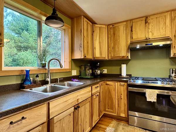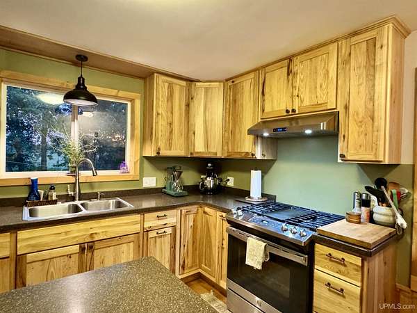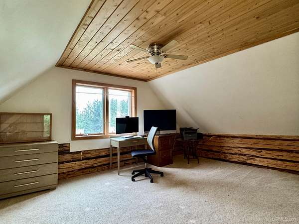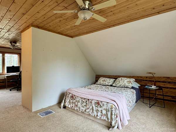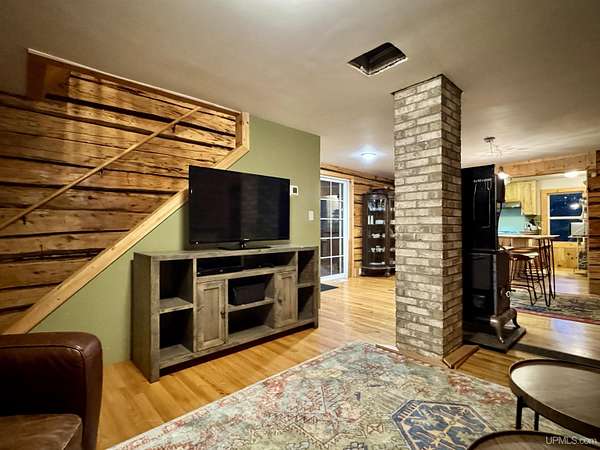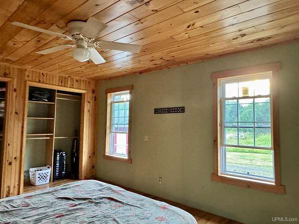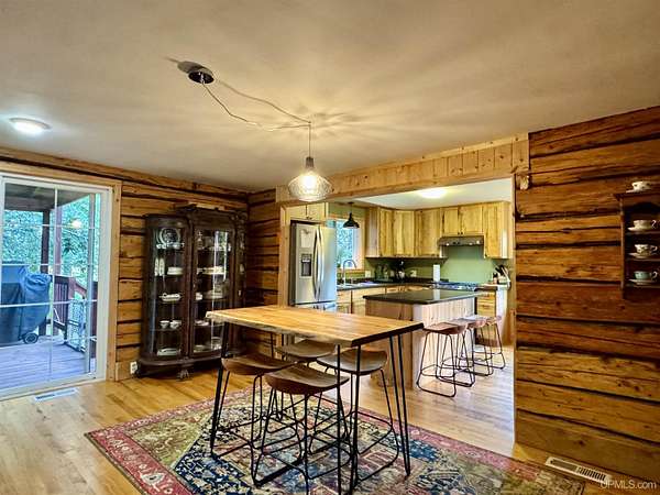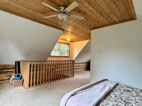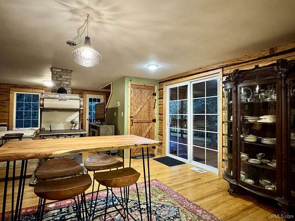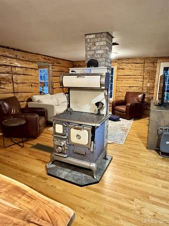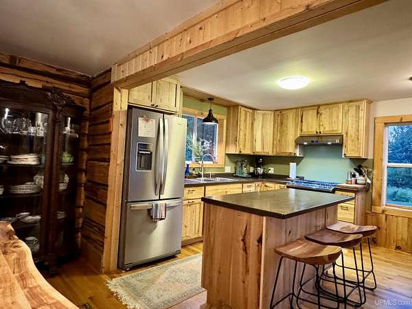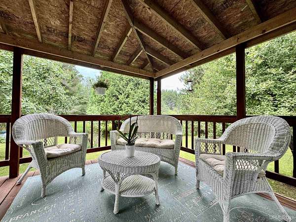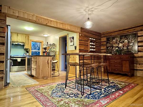 Beautiful hand-hewn log home nestled on 40 acres in Chassell, MI. This charming property has been updated over the years with newer electrical, plumbing, windows, furnace, and roof. The kitchen features a practical and open layout, and the main floor includes a spacious bedroom, making single-floor living a great option. The water to the home is provided by an artesian well which includes a runoff and is some of the best tasting water you will find. Upstairs, the space is open with two distinct sides separated by a closet. On the main floor, there's a sliding patio door and a standard door leading to a lovely 40' covered wrap around deck--a perfect spot to relax, listen to birds, and watch hummingbirds during the golden hour. Most of the 40 acres is a designated bird and wildlife sanctuary, with two ponds that offer an incredible experience, especially in spring when migratory birds return. Sandhill cranes, geese, ducks, and more call this sanctuary home, accompanied by the songs of springtime peepers. The property also includes a two-car garage and an old hand-hewn log barn, perfect for storing whatever you need. Minutes from MTU, ski and biking trails and snowmobile trails. This truly unique property must be seen to be fully appreciated. Schedule your showing today! Taxes are not zero and are subject to change with new owners. 72 hour response time required on all offers