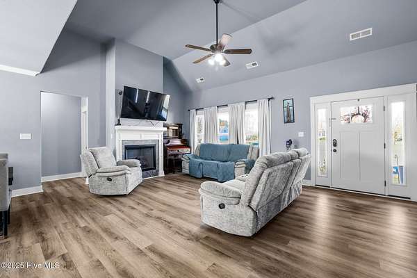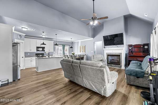 - Ceiling Fan(s), Gas Log, Kitchen Island, Master Downstairs, Pantry, Solid Surface, Vaulted Ceiling(s), Walk-In Closet(s), Walk-In Shower