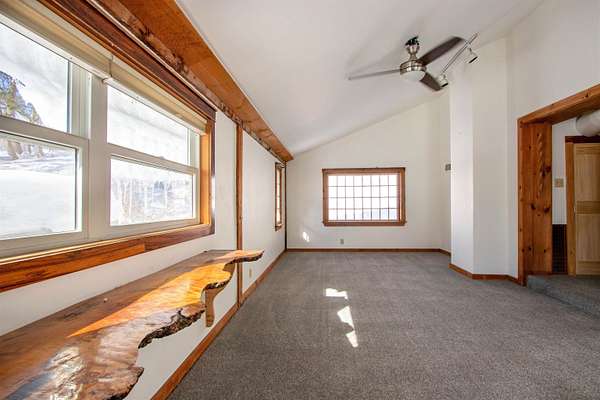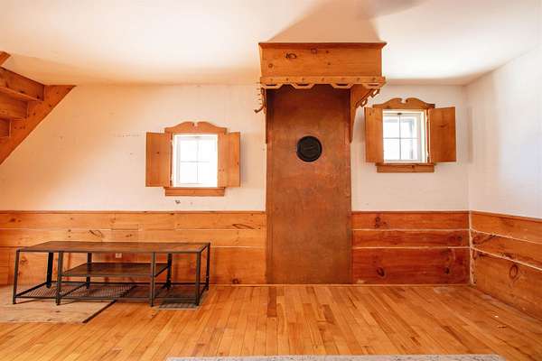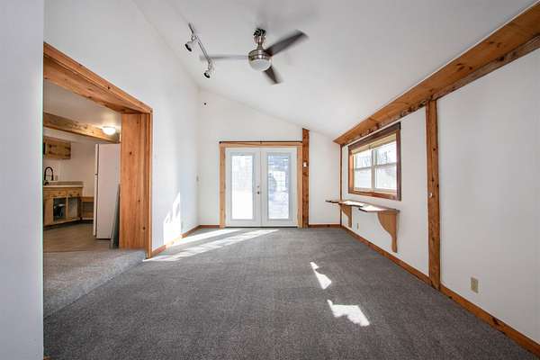 Set in the heart of Danville Village, this converted barn offers a rare blend of village living and open space, all on 4.32 +/- acres. Located on beloved Brainerd Street, the property includes a lovely open field behind the home, giving you breathing room, views, and flexibility, all while being moments from the Village Green, restaurants, school, community events, the Lamoille Valley Rail Trail, and Route 2 for easy commuting. The home itself has a relaxed, rustic vibe with smart built-ins and character throughout. The main level features a spacious living room with a door leading out to a balcony, a petite and efficient kitchen, a bedroom with an attached bath with walk in shower, and a convenient laundry room. Upstairs, you'll find a generously sized bedroom with good closet space. The lower level offers finished living space with vaulted ceilings, a living area, kitchen, full bath, and access to an attached shed. Whether you're thinking of guest space, extended living, creative use, or income potential, there's flexibility here. A unique property with room to spread out, options to explore, and a location that truly shines.