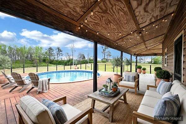 Est $2,092/moWelcome to your private country retreat! Nestled on 3 beautiful acres, this move-in ready home offers the perfect blend of comfort, space, and outdoor living. Relax on the charming wrap-around porch or enjoy summer days by the above-ground pool with an expansive deck. The property also features a serene pond, cozy firepit area, and a huge shop--ideal for hobbies, storage, or workspace.