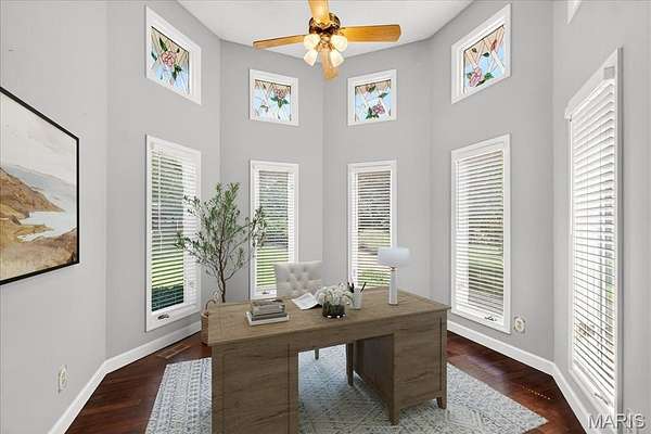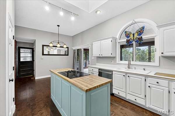 - Bar, Bookcases, Breakfast Room, Built-In Features, Ceiling Fan(s), Double Vanity, High Ceilings, Kitchen Island, Laminate Counters, Open Floorplan, Pantry, Whirlpool