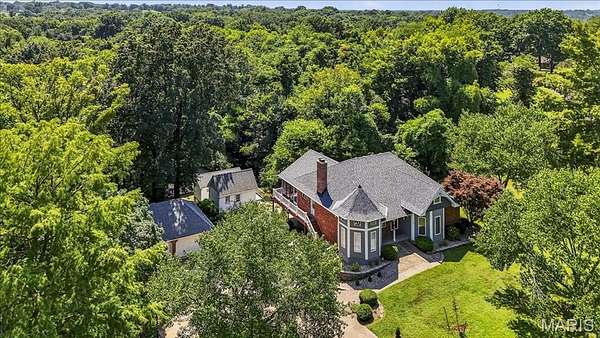 This charming Victorian style home sets on a wooded 2.66 +/- acre mini estate that offers many opportunities for expansion and multiple uses with its 3 outbuildings and large attic area that is currently unfinished, but does have stair access from the foyer. Imagine using one of the sheds as a gardening/greenhouse or a woodworking shed that is nestled along a stone path with access to a 3rd garage building. The flowers and trees stay green and pretty with the sprinkler system. The home features two wood burning stoves one on each level. The kitchen is a cook's delight with stainless steel appliances and access to huge covered screened in porch that is perfect for entertaining. The primary suite has a ten foot ceiling and private bath with his and hers sinks and closets. The Lower Level features two entertaining areas that could be a TV/Media room, exercise room or family room. There is a wet bar and walk-out access to huge covered patio. A lovely opportunity awaits you here!