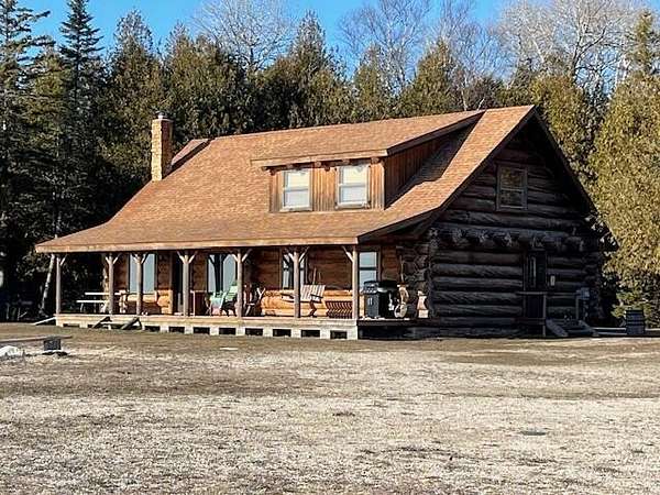 Beautiful Lake Huron setting and log home with multiple out buildings on Bois Blanc Island, MI. Your private 265' of water frontage with 2 permanent jetties holds multiple watercraft and a 11/2 story home using 18'' logs makes this property spectacular! The 4 bedroom 2 bath house comes completely furnished minus personal items and is move-in ready. It easily sleeps 8 in main house and outbldg sleeps 4 with many more possibilities for expansion.