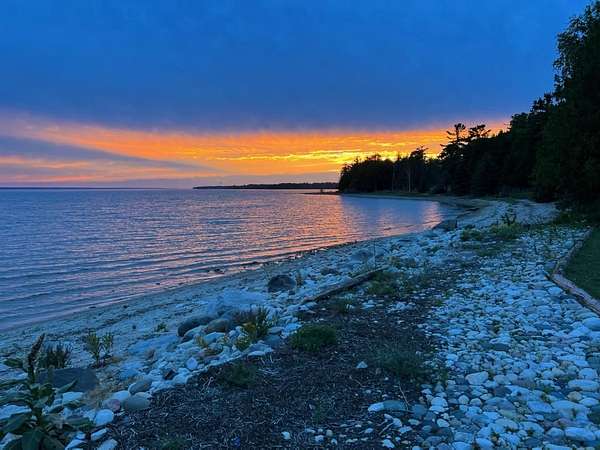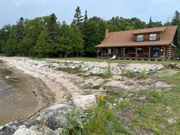 Beautiful Lake Huron setting and log home with multiple out buildings on Bois Blanc Island, MI. Your private 265' of water frontage with 2 permanent jetties holds multiple watercraft and a 11/2 story home using 18'' logs makes this property spectacular! The 4 bedroom 2 bath house comes completely furnished minus personal items and is move-in ready. It easily sleeps 8 in main house and outbldg sleeps 4 with many more possibilities for expansion.