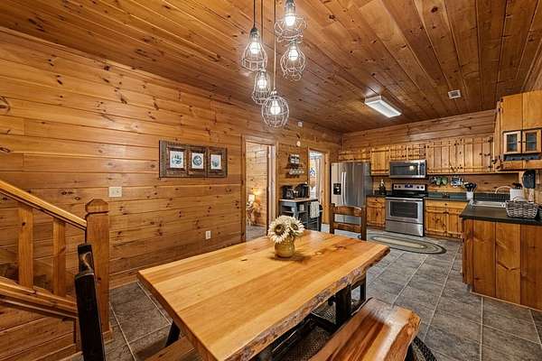 Your Forever Mountain Escape: Charming 4-Bedroom Retreat on 3 Private Acres! Wake to birdsong and sunrise through ancient oaks--your new life in this enchanting 4-bedroom, 2.5-bath haven on 3 rolling acres in Blue Ridge, GA. More than a house, it's a love letter to slow days, starry nights, and soul-stirring mountain freedom. Ideal for family legacies, dream second homes, or personal paradise. Step into warmth: Gleaming hardwood floors and tongue-and-groove walls craft cozy, cabin-chic allure--like a warm embrace in high-country style. Gather by the stack stone gas log fireplace for evenings of stories and cocoa. The spacious eat-in kitchen shines with stainless steel appliances, perfect for family feasts, sizzling pancakes, and wine-sipping supervision amid valley views. Unwind in the oversized primary suite: A deep soaking tub for bubble baths that banish worries, plus double vanities for easy mornings. Three more bedrooms offer retreats for kids, guests, or a home office--space to breathe. Outdoors enchant: Coffee on the screened porch with hot tub jets and misty views. Pups romp in the fenced yard; starlit firepit nights with s'mores. 3 acres for gardens, glamping, or whims. Minutes from Downtown Blue Ridge--cafes, shops, craft brews. Epic hiking, biking trails, lakes, and rivers for kayaking, fishing, or floats. Seclusion meets adventure. Bonus: Proven short-term rental success for income--own the magic! Priced to enchant, ready for you. Tour today; let the mountains call home. Don't miss out!