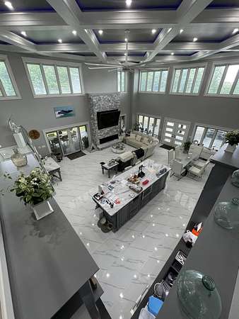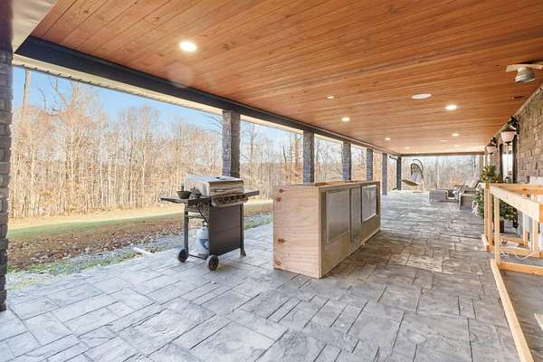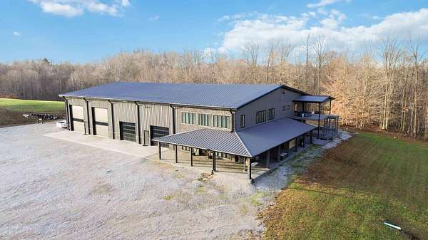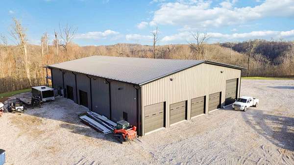 Escape to paradise, with this stunning barn dominium on 5+ serene acres. Surrounded by a creek on one side & convenience to Lake Cumberland on the other. Built in 2020, this 4bed, 3.5bath home features 22ft ceilings upon entry, imported marble floors throughout, a grand stone fireplace, dream kitchen with solid marble countertops, custom cabinetry, double oven, hideaway fridge, & induction cooktop. The app-controlled surround stereo system fills the home with your favorite music. Upstairs offers 9 ft ceilings & heated floors. The massive primary suite open to a 20x30 composite deck, spa-like bath with double rain-tree showers, double vanities, a soaking tub, plus a massive walk-in closet with additional washer and dryer. The 7,000 sq ft garage is a masterpiece of its own, perfect for cars,boats and other recreational vehichicles with 11 garage door for easy access. It's also insulated and heated with sealed concrete floors and custom shelving. Convenient golf cart access to Lee's Ford Marina offers a perfect day on the lake. This property is designed for those who appreciate luxury, functionality, lots of wildlife in a tranquill setting. Additional lots available for purchase