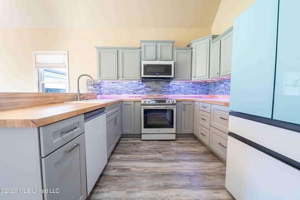Charming Single-Story Home on Over Two Acres with Brand-New Kitchen! MOVE IN READY!! Discover peaceful country living with this beautifully updated three-bedroom + LARGE BONUS, two-bath home set on over two acres of open space. This single-story residence blends modern comfort with serene surroundings, offering plenty of room to relax, entertain, and grow. Step inside to a fully renovated kitchen featuring brand-new cabinets, butcher block countertops, and all brand new appliances - all ready for your first meal. This inviting floor plan flows seamlessly into the living and dining areas, perfect for both everyday living and hosting guests. Enjoy the convenience of two spacious full bathrooms, updated finishes, and plenty of natural light throughout. Outside you will find a detached two-car garage with upper level storage, covered back patio with like-new hot tub and endless opportunities to create your ideal outdoor retreat - whether that's a garden, workshop, she-shed, or play space. With it's combination of modern updates and expansive land, this home offers the best of both worlds - comfort and privacy, just minutes away from town amenities. This one will NOT last long!