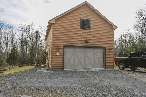 This 90 acre wooded parcel with frontage on the St. George River, a pristine 2 bedroom log home and oversized heated garage is ready for you to move in. Enjoy one floor living with vaulted ceilings, open beams and massive stone fireplace with woodstove insert. Each bedroom has its own full bath. Extra sleeping space is in the loft areas over the bedrooms. There is a large screened porch off of the living room where you can relax and enjoy the nature around you in the warm summer months. The garage is insulated, sheet rocked and heated and has a full second floor which could be turned into a studio, workout space, apartment or whatever. A well groomed path leads to the waterfront where you can launch your canoe or kayak or just just sit quietly and observe the beauty around you. The property is in Tree Growth which helps keep the property taxes at a very affordable level. The drive into the property is partly by a deeded right of way and the home is about 1/3 of a mile in from the main road. This is a nature lovers paradise and a real "must see". Call. text or email Judy Brossmer