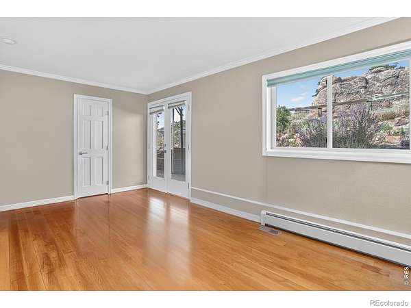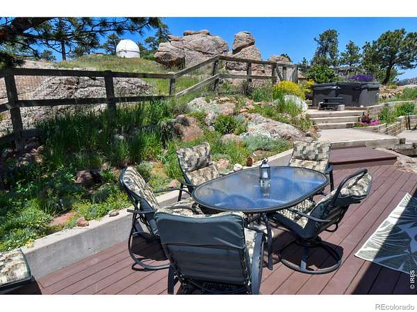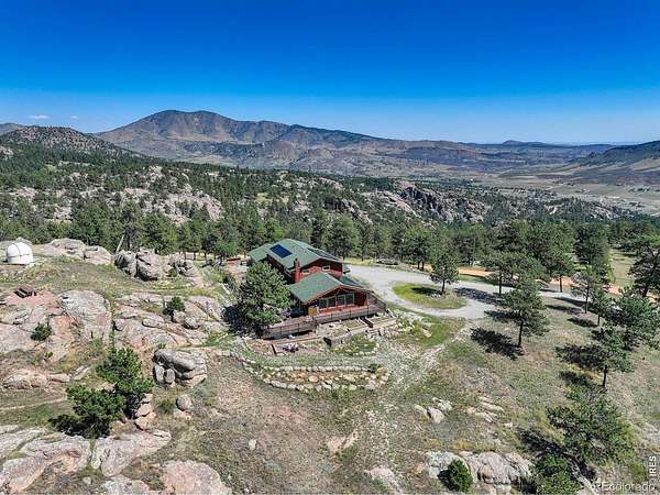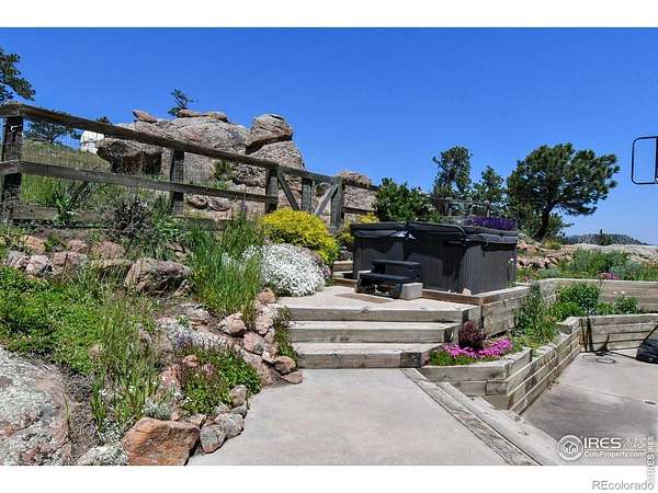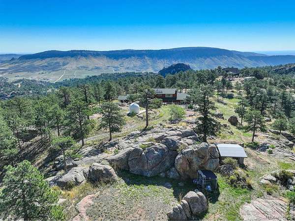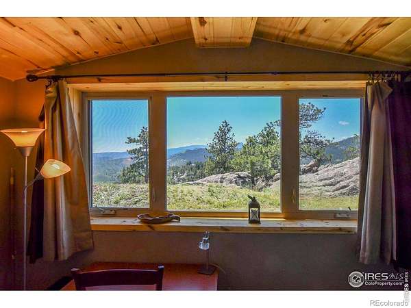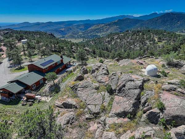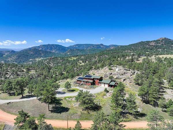 Price Drop!! New Price $1490,000 and Seller Concession of $30,000 towards rate buy down or closing cost. Spring Gulch Ranch. A rare dream home in a coveted canyon. This exquisite property is minutes to the town of Lyons and offers mountain living at its best, with extraordinary views from every room and lots of natural light. Stroll the gorgeous walking path that weaves through this 14.8 acre wonderland. Enjoy the amazing rock outcrops and many usable areas...great for meditation, camping, outdoor concerts and more. Fifty paces behind the house, a beautiful cabin sanctuary with electricity awaits you or your guests. At the end of the day, soak under the stars in the new hot tub! You will love the luxury and flow of the newly remodeled kitchen with high end quartzite countertops, a large island, new stainless appliances, induction stove, double oven & modern floor tile with views of the canyon and trees. The master suite also has incredible views with a newly remodeled 5 piece bath with marble and quartzite including a soaking tub, separated toilet and huge attached walk-in closet. The exquisite living room has vaulted ceilings with a wall of windows looking south out to the canyon and mountains and rock outcrops. The wood stove brings added heat and ambiance then flows into the dining area and kitchen. This all electric, newly updated 400 amp electric home has low energy carbon footprint and energy bills, because of the 31 solar roof panels, electric boiler heat (retains humidity) and on-demand electric hot water. An oversized 2 car garage has lots of cabinets with an attached carport for a 3rd vehicle and several storage sheds outside. The Well produces enough water for a family of 3 with an extra 4800 gallon cistern for back-up or watering gardens, and the well developed flower gardens have a sprinkler system and several raised garden beds. Start living your mountain retreat!