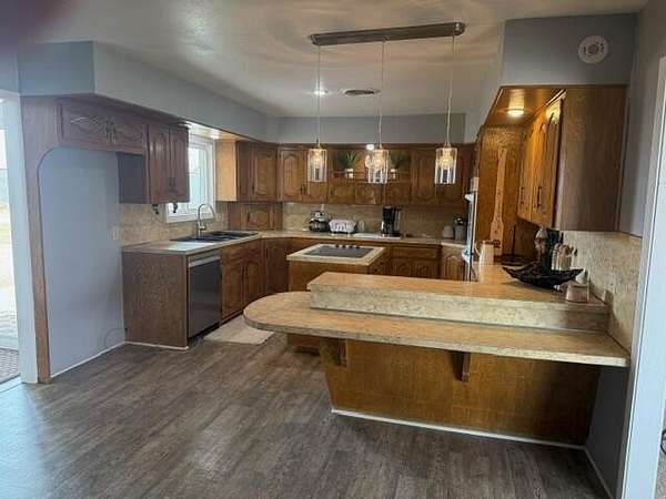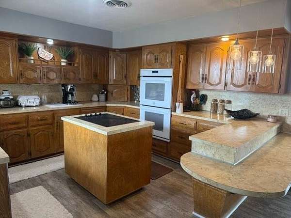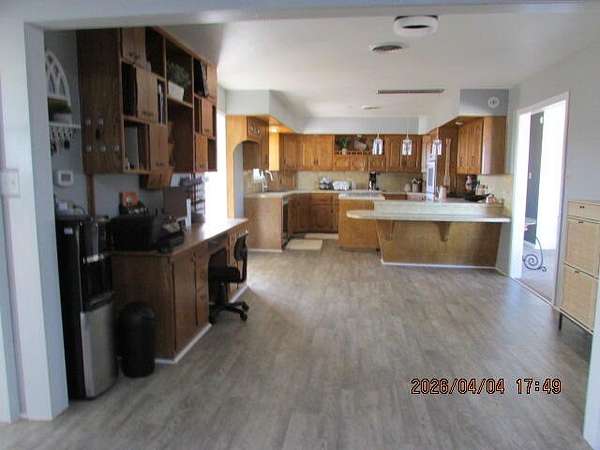 - Built-In Features, Ceiling Fan(s), Formica Counters, Kitchen Island, Natural Woodwork, Open Floorplan, Pantry