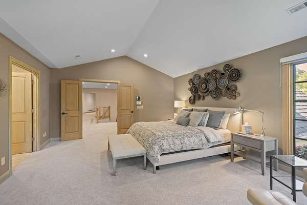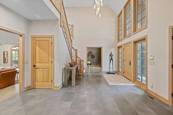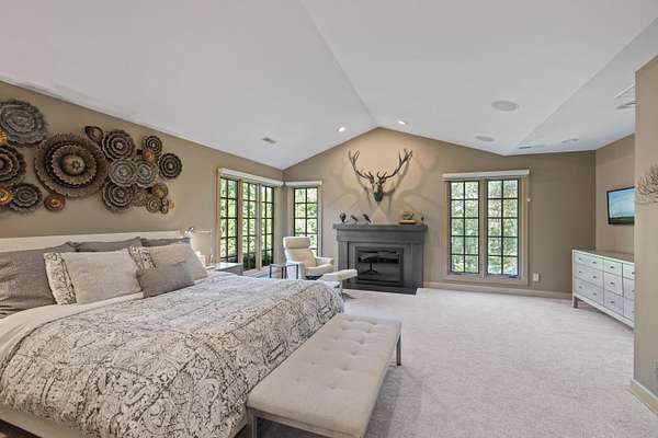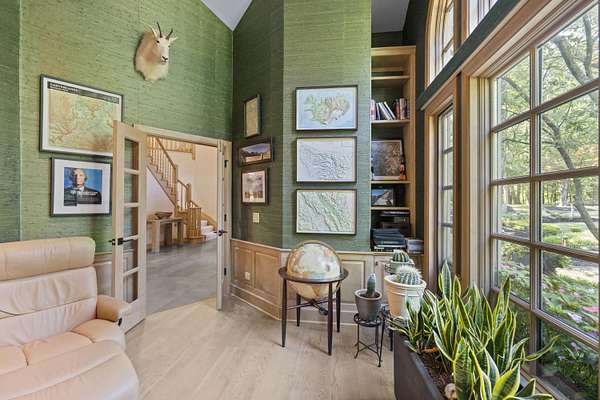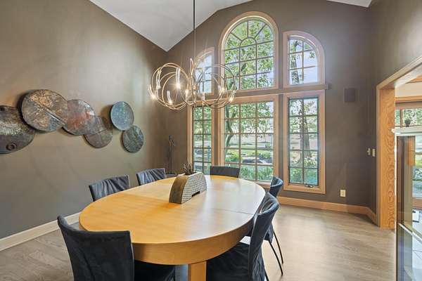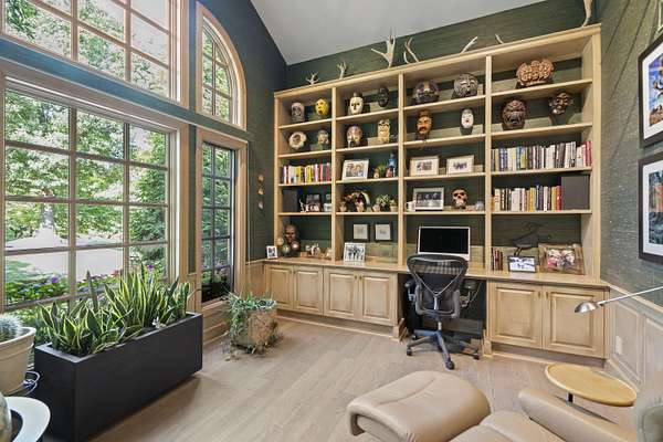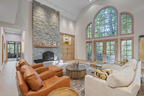 - Bookcases, Built-In Features, Cathedral Ceiling(s), Ceiling Fan(s), Chandelier, Crown Molding, Double Vanity, Eat-In Kitchen, High Ceilings, Kitchen Island, Multi Panel Doors, Natural Woodwork, Open Floorplan, Recess Ceiling(s), Recessed Lighting, Walk-In Closet(s)