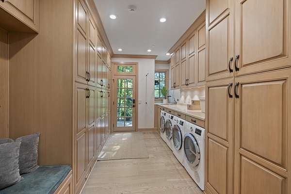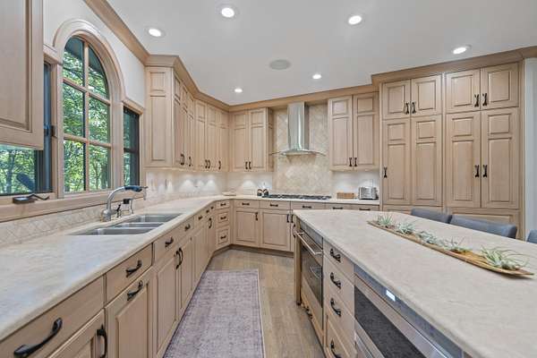 - Dishwasher, Disposal, Double Oven, Dryer, Electric Oven, Gas Cooktop, Microwave, Refrigerator, Washer, Wine Cooler