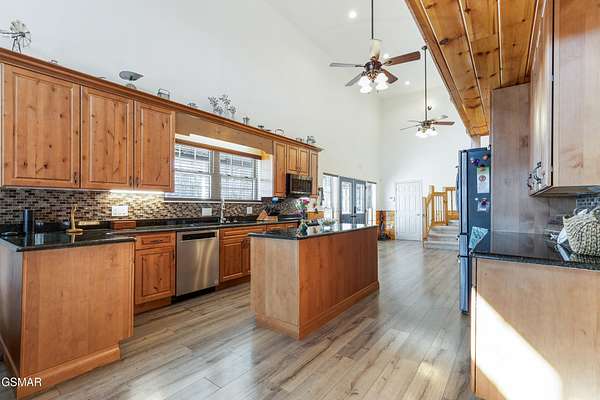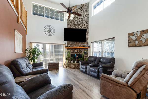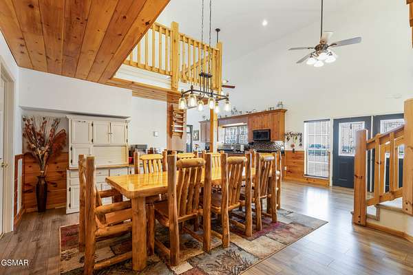 This stunning property offers breathtaking mountain views and is conveniently located near Douglas Lake, Dandridge, and Sevierville. Just miles away from two boat ramps. Featuring a spacious and open floor plan, this home boasts 3 bedrooms, a bonus room, and 4 bathrooms. Two of the bedrooms are on the main level and two rooms upstairs. With Soaring cathedral ceilings, a large open dining area with island, and centering around a cozy woodburning fireplace create a warm and inviting atmosphere. The second floor living area provides additional space, while the home offers an abundance of storage, extra rooms that include both a 26'x33' and 26'x22' office making plenty of room for extras. Fresh interior paint and the addition of a built-in generator for convenience, composite deck upstairs. Step outside to enjoy the amazing porch or private hot tub, covered patio area, both perfectly situated to take in the stunning views. The property is beautifully landscaped and features a heated saltwater pool with a bathroom/pump house, perfect for entertaining. Additional features include two oversized attached garages, a 30x50 workshop building, insulated and fully wired she-shed located next to the carport that the Seller is negotiable on leaving. The freshly asphalt driveway offers ample parking, including RV space and a designated playground area. This property is a perfect blend of functionality and luxury, offering endless possibilities for work, play, and relaxation. Don't miss the chance to make this mountain-view retreat your own! Call the listing agent for a private viewing...