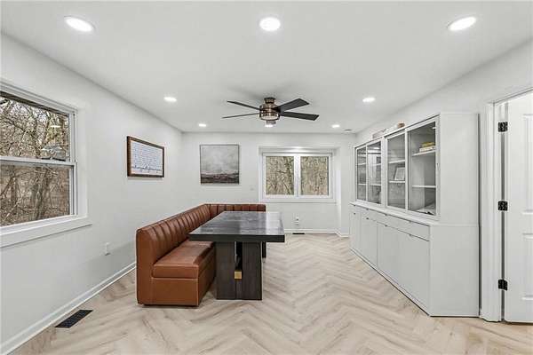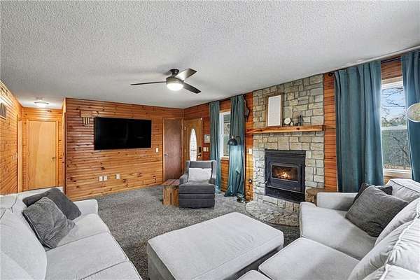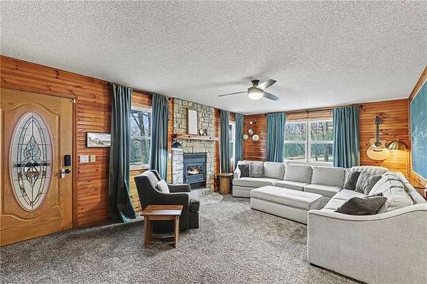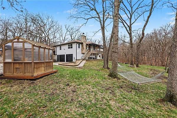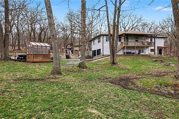 Welcome to your own private retreat on 9 picturesque acres in Kingsville, where peaceful country living meets modern comfort. This beautifully maintained 4-bedroom, 3-bathroom home offers the perfect balance of updated interiors and cozy countryside charm, surrounded by mature trees, open land, and abundant wildlife. Inside, the updated kitchen features high-end appliances, generous storage, and finishes that make it the heart of the home. The spacious layout provides comfortable everyday living along with flexible spaces for entertaining or working from home. The finished basement adds additional living space ideal for a family room, home office, or guest area. A whole-home water softener and purifier provide high-quality water throughout. Large windows frame peaceful views of the surrounding acreage. Enjoy watching squirrels in the trees, birds feeding nearby, and frequent visits from deer and wild turkey. In warmer months, tree frogs announce the arrival of spring and provide the soundtrack for quiet country evenings. On cooler nights, gather around the fireplace or enjoy the outdoor firepit while watching kids or grandkids play on the nearby playset. Step outside onto the covered porch and take in sweeping views of your land. The property is perfect for a hobby farm or homestead lifestyle, complete with a large storage shed/workshop, chicken coop, greenhouse, and a peaceful pond. Whether raising animals, gardening, or simply enjoying space and privacy, this property delivers. Despite the private setting, the home is still an easy drive to Kansas City and nearby amenities, offering the tranquility of rural Missouri with convenient access to the city. Properties with this combination of updated home, usable acreage, and outdoor lifestyle amenities are rare.