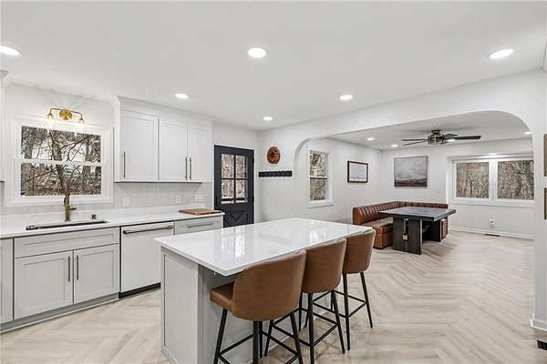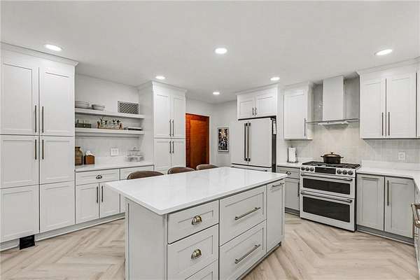 - Ceiling Fan(s), Custom Cabinets, Kitchen Island, Pantry, Stained Cabinets