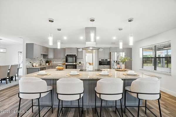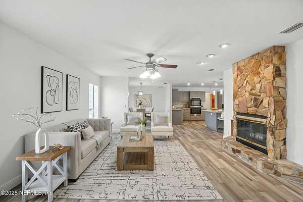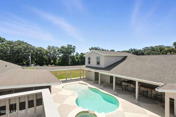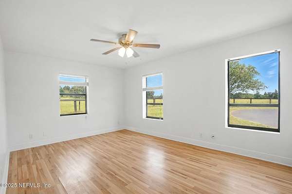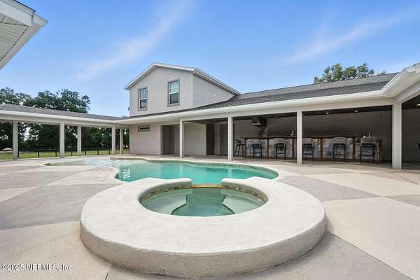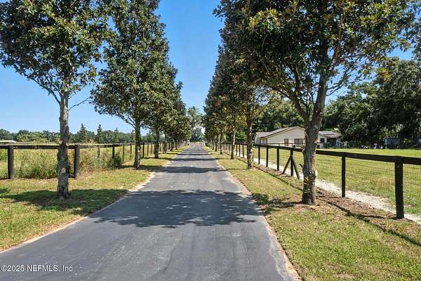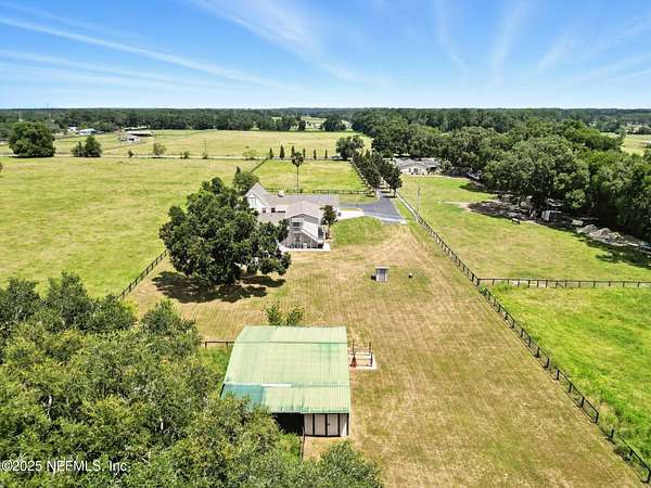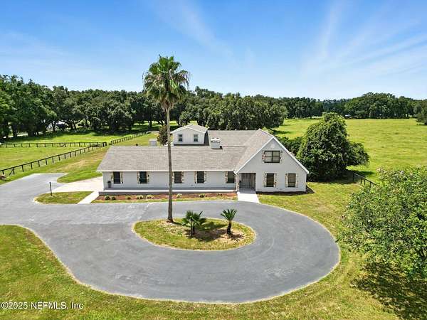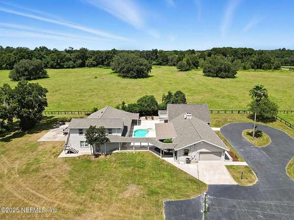 Welcome to your dream property: 7.84 acres of picturesque pastureland adorned with grand oaks, a gated entrance, and a Magnolia-lined driveway that sets the stage for elegance and privacy. Located on the peaceful south end of the farm, this estate blends thoughtful design with luxurious upgrades inside and out. The 3,297sf main home (plus over 1,300sf apartment and office) has been beautifully updated in 2025 with a brand-new roof, a new HVAC system, and fresh interior and exterior paint that gives the entire property a crisp, modern look. Inside, you'll find ceramic tile floors that mimic the warmth of hardwood, sleek granite countertops, state-of-the-art appliances, and a cozy double-sided fireplace that connects the living and dining areas seamlessly. Connected to the main residence by a lighted breezeway, the oversized garage, guest house, and expansive office create incredible flexibility for working from home, multigenerational living, or even short-term rental potential. Between the two structures sits the heart of the outdoor space: a stunning zero-entry pool with a brand-new filter and pump (2025), complemented by an outdoor kitchen and a spacious entertainment patio perfect for gatherings or quiet evenings under the stars. For the hobbyist or adventurer, the 30'x45' second garage features two 9' bay doors and generous space for boats, up to six vehicles, or any combination of toys and tools. A 50-amp RV hookup adds even more convenience for those who travel or host. The property also includes two water heaters- one hybrid heat pump and one on-demand system, as well as dual septic systems to accommodate both residences. Energy efficiency was a top priority in this meticulously designed home which includes the foil-wrapped roof trusses that help regulate interior temperatures and reduce energy costs. Equestrian enthusiasts will appreciate the three-stall, center aisle barn complete with a tack room, ready for horses or hobby farming. The beautifully updated guest apartment enhances the property's versatility, whether used as an in-law suite or income-producing rental. Just eight minutes from The Villages, 19 minutes to downtown Ocala, and only 28 minutes to the World Equestrian Center, this property delivers the rare combination of privacy, functionality, and unbeatable location. Call today to schedule your private showing of this fully renovated and truly exceptional estate which includes over 8,000sf under roof.