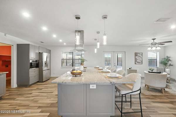- Ceiling Fan(s), Entrance Foyer, Guest Suite, Kitchen Island, Open Floorplan, Pantry, Shower No Tub Primary Bathroom, Walk-In Closet(s)