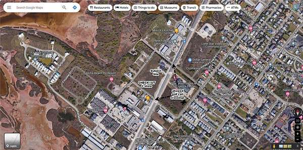 Est $7,365/mo.827 acres of land out of Lot 01 / Block 01 Eskridge Subd; located between Castor Collection / CB Port A Escapes and planned Checkout convenient store. Situated along busy State Hwy 361 near numerous retail businesses, hotels, etc. One of few tracts on west side of Hwy 361 with access to legal golf cart crossings (both Pleasant Valley Dr and Howard Dr).