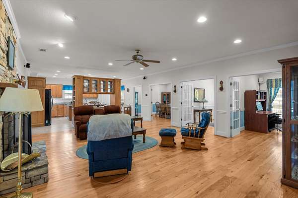 Welcome to Rising Star Farm-a thoughtfully designed equestrian sanctuary set on just over 25 acres in beautiful Lincoln County! This move-in-ready estate blends charm, functionality, and flexibility, making it ideal for equestrian professionals, hobbyists, or multi-generational living. With the expansive grounds, picturesque views and structural versatility, this would also make a phenomenal opportunity for a hospitality venture, wedding venue or private retreat. The custom ranch home spans over 4,300 sq ft and features 4 bedrooms, 4 full baths, 2 half baths, a 6-car garage, and a private in-law suite. A charming rocking chair front porch and a Trex-covered screened-in porch offer the perfect spaces for quiet mornings or entertaining guests. Inside, you'll find hardwood flooring throughout, a formal dining room, and a dedicated office/den, checking all the boxes for everyday comfort and elegant hosting. The foyer opens directly into the great room, anchored by a stunning stone fireplace. The spacious kitchen boasts warm wood cabinetry, granite countertops, a large island, and two sinks-perfect for culinary enthusiasts. The owner's suite provides a private retreat with a garden tub, dual vanities, a large walk-in shower, and a spacious closet. For added convenience, the suite connects directly to the laundry/mudroom and the main 3-car garage. The home features three additional guest bedrooms with ensuite baths, offering comfort and privacy for family and visitors alike-including a main-level in-law suite thoughtfully designed with accessibility in mind. The in-law suite includes ramp access and an interior elevator that connects to the three-car garage, which features a workshop, wood-burning stove, safe room, and half bath. Inside the suite, you'll find a spacious living area with built-ins, a full kitchen, and a large bathroom-an ideal setup for extended family or long-term guests. Equestrian facilities are top-notch, including a 6-stall barn with a central aisle, feed/supply room, and a barn office/show tack room. Water connections are in place for up to five additional stalls. Above the barn, a light-filled apartment features vaulted ceilings, a full kitchen, bedroom, and bathroom-perfect for guests, staff, or rental income. Enjoy four fenced pastures, including two connected to a pole barn with run-in stalls and attached paddocks. The pole barn also offers ample storage for up to five trailers and includes an overhead hay loft. A 30-amp connection in the pole barn is ideal for trailer or RV use, and a convenient onsite trailer dump station located behind the main barn-thoughtfully designed with equestrian travel and events in mind. Additional features include both public water and a private well, whole-home and barn generators, fiber internet, and an unbeatable location-just 30 minutes from Augusta, minutes to Lake Thurmond/Clarks Hill, and near top horseback riding trails, polo grounds, and hunter/jumper farms. Only 2 hours from the Georgia International Horse Park and a local world-class equine rehab center. The perfect blend of luxury, practicality, and equestrian excellence-Rising Star Farm is ready to welcome you home.