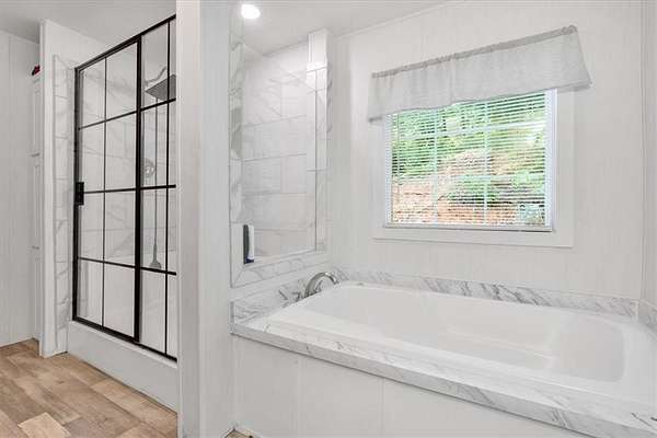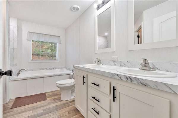 All the work is done! Your little piece of paradise in the mountains exists in this only 2 years new home on a PERMANENT FOUNDATION, which boasts 1,976 square feet, 4 bedrooms and 3 full baths. This practically new home offers all the space, storage and modern conveniences, buyers are looking for. The modern kitchen opens to the spacious family room with a countertop island and breakfast area. The separate dining room can also act as a flex room with barn doors for a home office or playroom. The primary bedroom suite is oversized with a luxury bathroom sporting a big walk-in closet, soaking tub and large walk-in shower. It is also set apart from the 3 secondary bedrooms and 2 full baths for maximum privacy. The home is also handicap accessible, with entrance ramp, wider doorways, and roll-in shower. No modifications necessary.