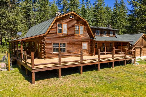Set on 5 peaceful acres in Huson's Elk Meadows, this 3-bedroom, 1.5-bath log home blends rustic Montana character with modern comfort. Handcrafted woodwork, a cozy stone fireplace, and a remodeled kitchen with granite countertops and stainless-steel appliances create a warm, inviting atmosphere. Outside, take in sweeping mountain and meadow views from the wraparound deck, gather around the fire pit, or enjoy the orchard, vegetable garden, and chicken coop-perfect for those who love the land. Recent upgrades, including a new furnace and AC, ensure year-round ease, while two double-car garages and an unfinished basement offer endless possibilities for storage, hobbies, or future living space. With abundant wildlife, nearby rivers and trails, and big Montana skies, this tranquil retreat offers privacy, beauty, and adventure just a short drive from Missoula.