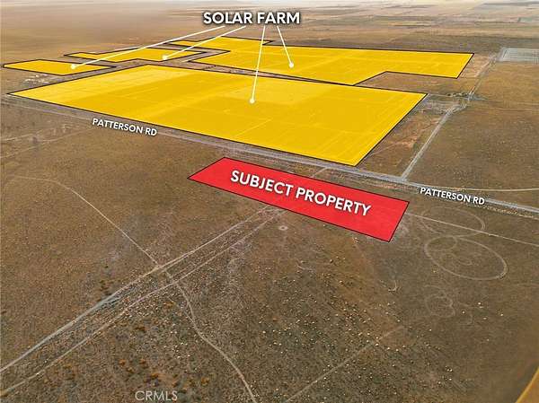 This 10-acre parcel at 19601 Patterson Road is perfect for a SOLAR FARM, ranch, or fun desert activities, offering a massive footprint in the growing Willow Springs/Rosamond area of Kern County. Located just north of Patterson Road, the land features flat, usable terrain and wide-open views of the high desert. This property serves as a versatile asset for those looking to develop a private homestead, establish an agricultural project, or secure a long-term land investment in a high-growth region. The property is perfectly suited for solar farming. Because Rosamond receives some of the highest levels of consistent sunlight in the country, this 10-acre lot is an excellent candidate for renewable energy production. The A (Exclusive Agriculture) zoning allows for a wide range of uses, from utility-scale solar arrays to traditional ranching and livestock. A buyer can also use the land to build a custom estate or a manufactured home with plenty of room for horses, workshops, or large-scale storage. As California's demand for renewable energy and open space increases, this parcel represents a strategic "path of progress" acquisition. The location provides a balance of desert privacy and proximity to major economic hubs. The property is situated within the "Aerospace Valley," just a short distance from Edwards Air Force Base and major employers like Northrop Grumman and Lockheed Martin. Additionally, the world-renowned Willow Springs International Raceway is nearby, drawing visitors and enthusiasts to the area year-round. While the site offers peace and seclusion, it remains only 20 minutes away from the shopping, dining, and medical facilities in Lancaster and Palmdale. This combination of energy potential and proximity to industry makes the land a standout choice for both developers and private owners.