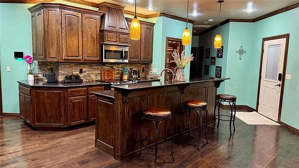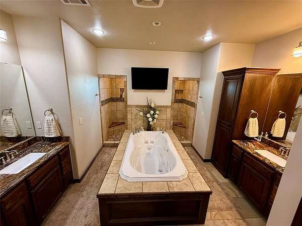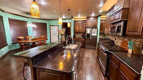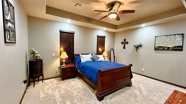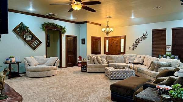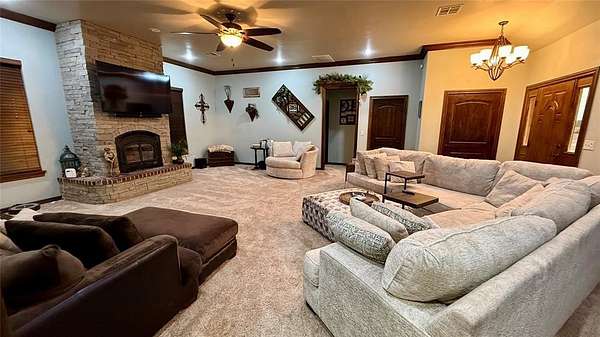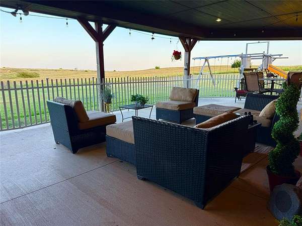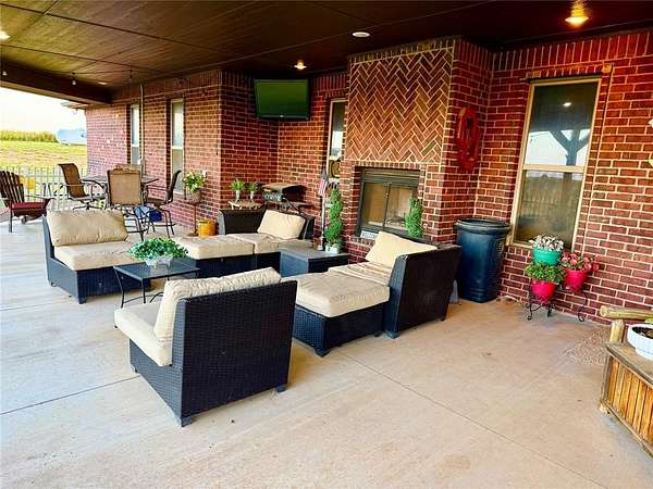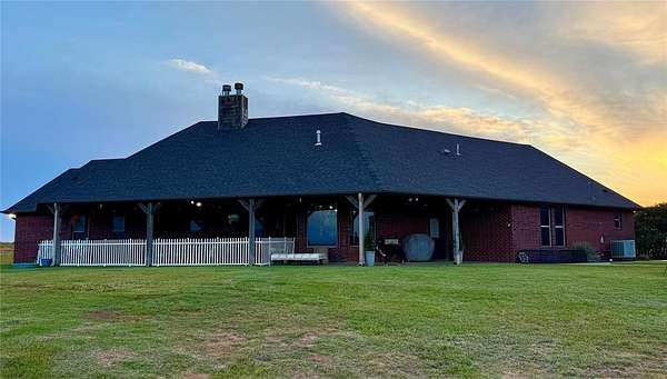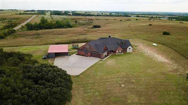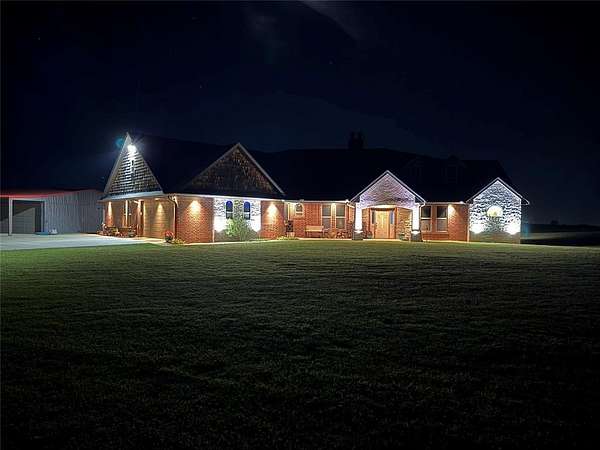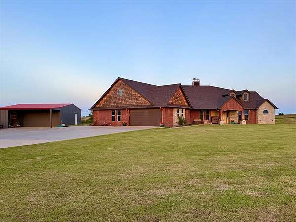 Experience the best of Western Oklahoma living -a stunning custom-built home on 5 acres that offers both comfort and practicality in a peaceful country setting. Featuring 3 bedrooms, 2.5 bathrooms (including a Jack-and-Jill), a dedicated home office, and a versatile bonus room, this home is designed with modern living in mind. Inside, you'll find granite countertops throughout, tankless water heater, spacious living areas, and large windows that showcase breathtaking sunsets out front and serene wildlife views out back. Cozy up to not one, but two fireplaces-one indoors and one outdoors on the covered patio, creating inviting spaces year-round. This home is as functional as it is beautiful, complete with a backup generator and easy access via a paved county road all the way to the property. Outdoors, the impressive 35' x 30' insulated shop with its own bathroom is ideal for hobbies, storage, or projects. Whether you're looking for wide-open views, modern finishes, or the convenience of being close to town while still enjoying the quiet of the country, this home truly has it all.