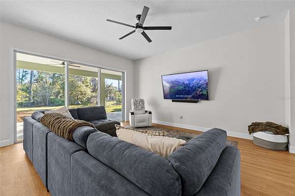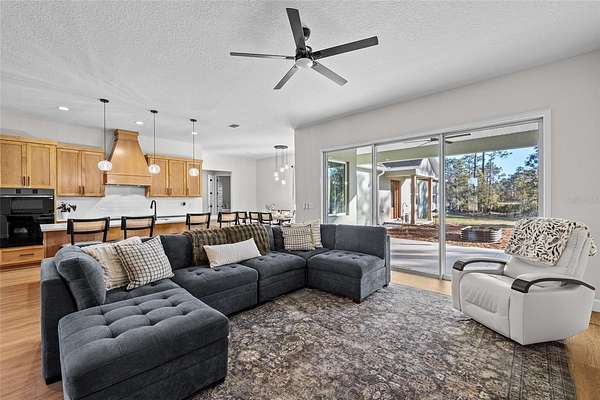 Outside: 8x32-ft front porch under truss, spacious back porch with fire pit, 751-sq-ft four-car garage with golf cart space, tandem parking, openers, epoxy floors, cabinets, scenic canal views, mature landscaping, and acreage for hobbies. Energy-efficient with insulating foam throughout for extreme savings, move-in ready with premium finishes--no HOA means freedom for families, or multi generational families near golf, shopping, attractions, and Hal Scott Preserve.
