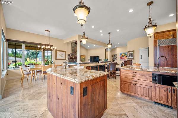 - Builtin Oven, Builtin Refrigerator, Butlers Pantry, Dishwasher, Disposal, Double Oven, Free Standing Gas Range, Free Standing Range, Gas Appliances, Granite, Island, Microwave, Pantry, Stainless Steel Appliance, Wine Cooler