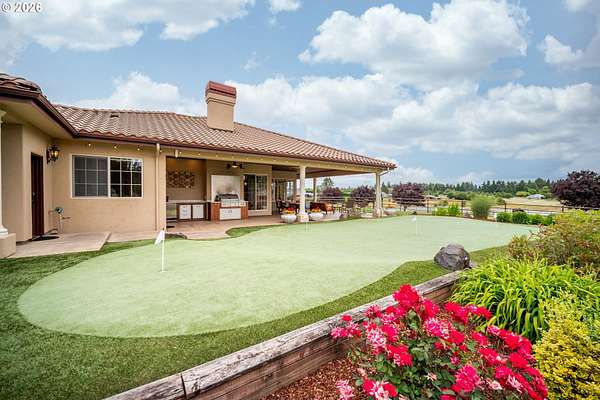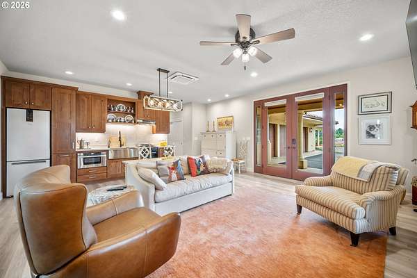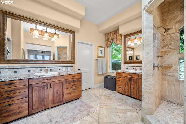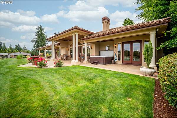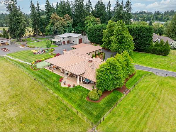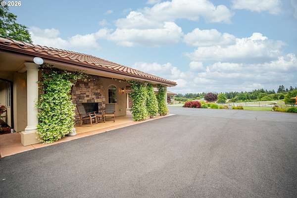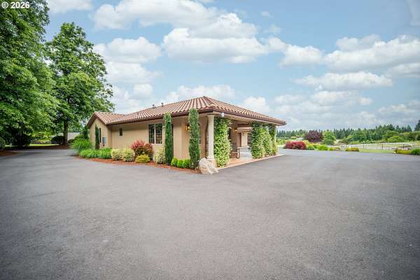 Exceptional gated Mediterranean-inspired estate offering 6,000+ combined multi-generational living on a picturesque 5-acre parcel with Mt. St. Helens views. Main home (4000 sf) features 3 bedrooms + office/flex room, Chef's kitchen with sub zero,Wolf, Bosch & Dacor appliances. Spectacular open and bright vaulted Great-room, Custom woodwork throughout. Luxurious primary suite, fireplace, heated floors in spa like bath, large walk-in closet.Attached (1,100 sf) ADA compliant ADU with full kitchen, bath, bedroom, fireplace.Plus a detached (900 sf) studio apartment. Oversized wraparound covered outdoor living space. Impressive shop building with 60 foot RV bay Full RV hookups, Built-ins and storage. Quality built state of the art barn and arena, Fenced and cross fenced,Enjoy a serene Park-like setting with mature trees, lush landscaping, expansive green lawns, fire-pit, putting green.Resort living yet close to both freeways, Airport, Hospital, Shopping, Restaurants. Rare opportunity for luxury lifestyle and multi-generational living.