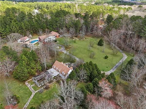 Unique opportunity in eastern Gwinnett County! This builder's home on over 10 acres has endless possibiliities. The gated driveway leads around the creek lined landscape, up to the main house oozing with Southern Colonial charm. This 3-sided brick gem stands tall above a brick staircase with covered front porches that span the entire front of the house on both levels. Inside, you'll be greeted with a two-story foyer and a library with plenty of built in bookshelves. The country kitchen has views of the beautiful yard on one side, and leads back into the fireside dining room. The fireside great room truly feels like the heart of this home with stacked stone, wood ceilings and stained glass windows. There is a bedroom on the main level and a full bathroom. All three full bathrooms in the home mirror each other with separate showers, whirlpool tubs, floor to ceiling mirrors and tons of storage! Two sets of stairs lead up to three more bedrooms, including the primary. All the upstairs bedrooms have access to the covered porches outside as well. There is also a large bonus room upstairs with a dry bar and powder room, the perfect setup for a craft room or man cave. Laundry on both floors and an oversized 3-car garage offers plenty of storage, functionality and options for multi-generational living. Out back, the 856 sq. ft. pool house features a full bathroom, steam room, sauna, kitchenette and storage shed. With some imagination, and some elbow grease, this area could be the life of any party! There is also a 1757 sq. ft workshop on the property that houses an additional 3-car garage and office space above that includes a full bathroom and kitchen. There are remnants of an old greenhouse that can be brought back to life in front of a hidden pathway, that winds back to a romantic gazebo. Close to Harbins Park, Rowen and all the new shopping and dining around the Harbins Road exit off Hwy 316.