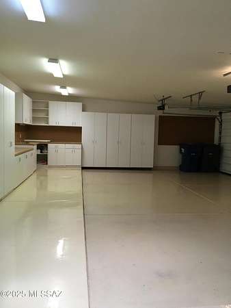 Custom kitchen with pull outs in pantry and most cabinets, prep sink, and little roll top desk. There is a very nice size laundry room with sink and plenty of cabinets that opens up to spacious 3 car garage with built in workshop, cabinets, &extra storage.