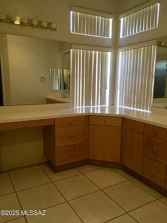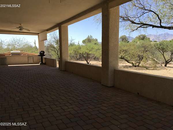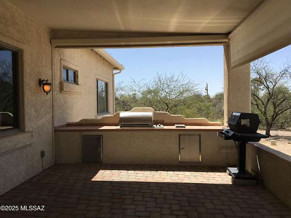 Beautiful one owner custom built home with registered private well on 4 acres of horse property!Dead end street backs up to LaMariposa Resort and some of the best riding trails in Tucson. Foyer opens up to great room with mountain views &huge back porch complete with outdoor kitchen and ceiling fans,great for entertaining! Split bdrm plan with access to back porch from master suite. Master has well thought out very large walk in closet,& beautiful master bath with dual shower. Custom kitchen with pull outs in pantry and most cabinets, prep sink, and little roll top desk. There is a very nice size laundry room with sink and plenty of cabinets that opens up to spacious 3 car garage with built in workshop, cabinets, &extra storage. This is a rare chance to own in this 4 home enclave!!