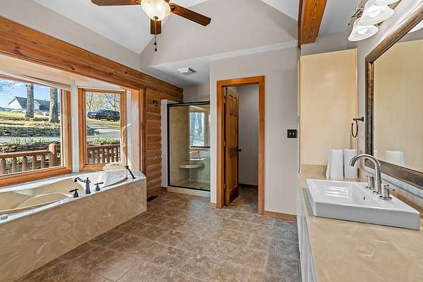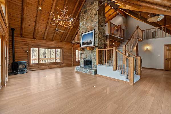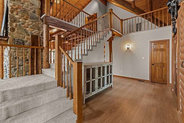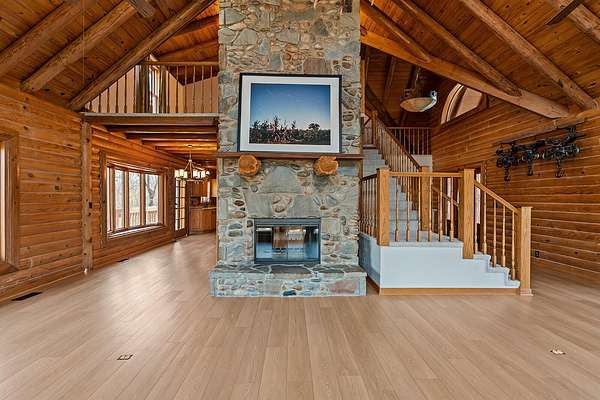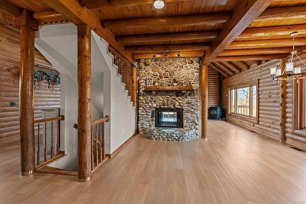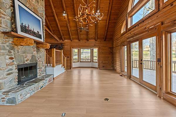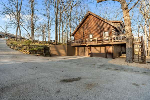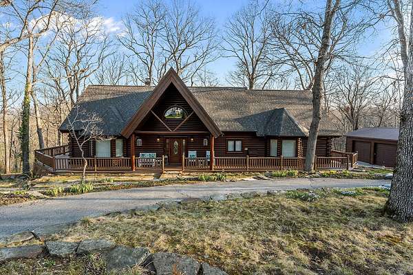 Welcome to the log home that checks all of the boxes! This home offers a soaring hearth room with a two-way stone fireplace, spacious kitchen with a huge island. The primary suite is sizable, cozy, and located on the main level. Upstairs you'll find a loft that is perfect for an office or living space. There is also a bedroom with a full bathroom. In the basement you'll find another living area, large bedroom with a full bathroom. Outside as you walk the wrap around deck you can admire the mature timber and professional landscaping. Let's not forget about the shop! It is a 40'x25' 3-bay shop offering 220 power and a half bath! Throughout the property you'll notice the meticulous maintenance & updates. The exterior logs had a full restoration that include warranty! Wait there's more...You get Nixa Schools with stone county taxes. Exclusive access to a 10-acre private river park...drive down or take the peaceful hiking trail that connects to the property! This home is unique, spacious, and ready for you.