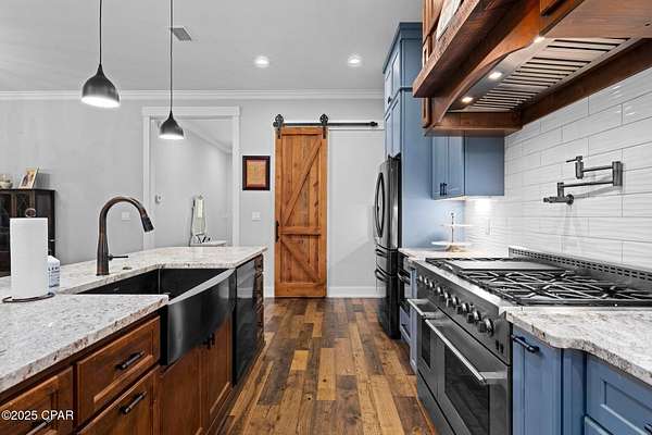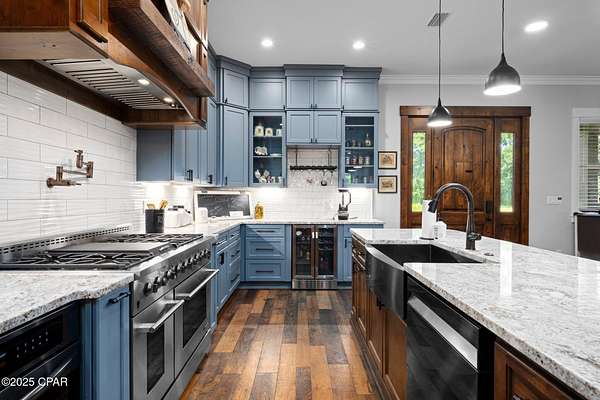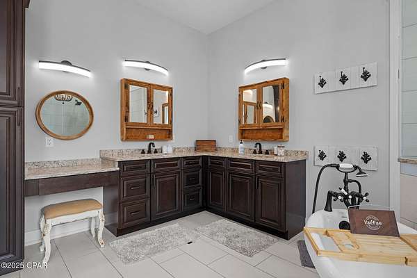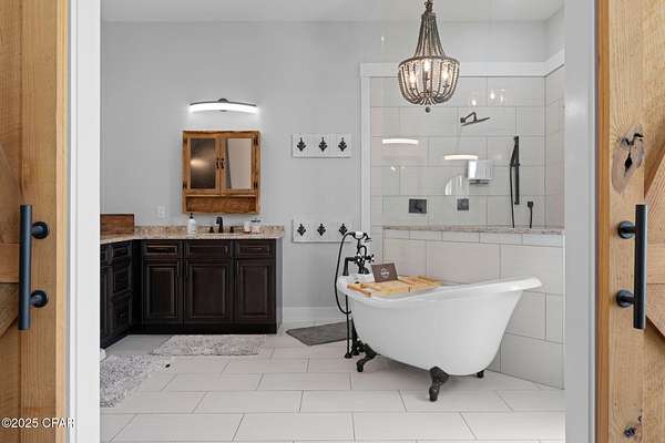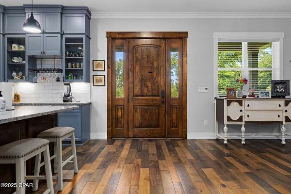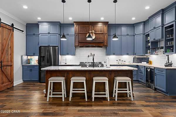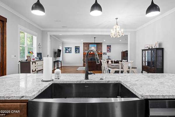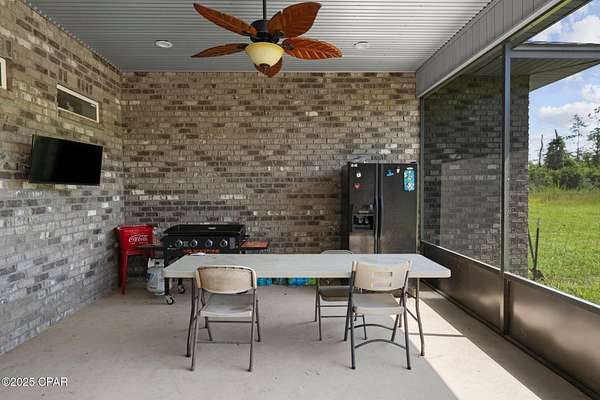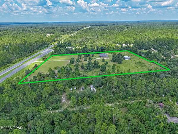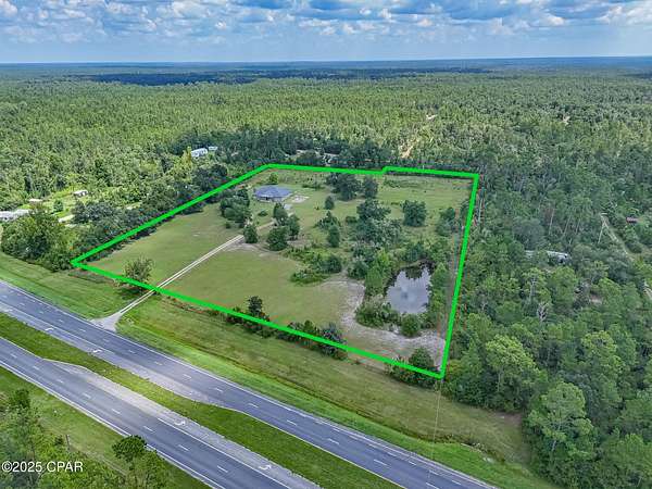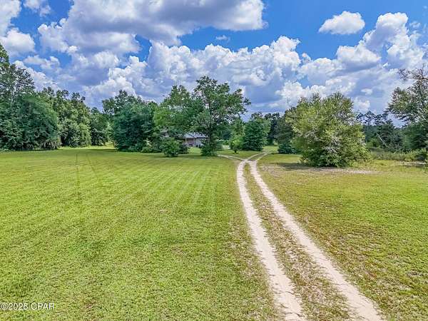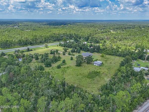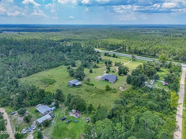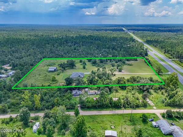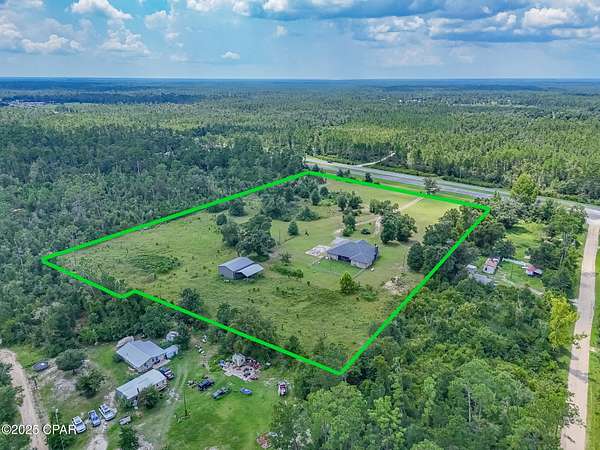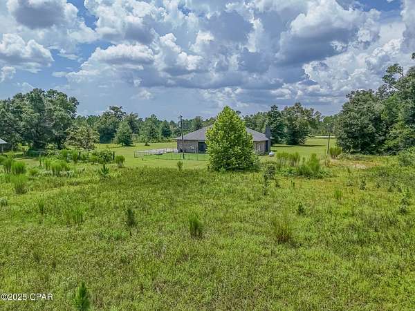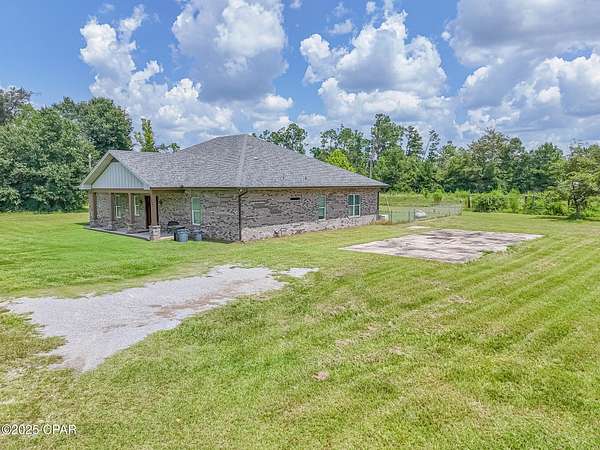 Experience the perfect balance of privacy and convenience with this gorgeous custom-built brick home, set on nearly 10 acres in northern Bay County. Built in 2020, this spacious 3,385 sq. ft. residence features four bedrooms and three-and-a-half baths, with a thoughtfully designed layout ideal for comfortable living and entertaining. Inside, you'll find engineered French oak flooring, granite countertops in the kitchen and baths, a custom built bar, commercial style gas stove, beverage/wine cooler, an open concept living area, and timeless finishes throughout. A detached garage offers additional storage or workspace, making this property as functional as it is beautiful. The home is also equipped with a whole house Generac generator. A second propane tank is for the kitchen stove and tankless water heater in the master bath. Enjoy the peaceful setting without sacrificing accessibility - this home is a short commute to Tyndall Air Force Base, convenient to Panama City for shopping and dining, and just a quick drive to the white sandy beaches along the Gulf of Mexico. This property offers plenty of space for outdoor activities, gardens, or future expansion, making it a rare opportunity to own acreage with easy access to the best of Bay County. If measurements deemed important, please verify.