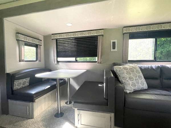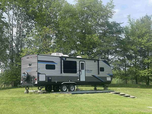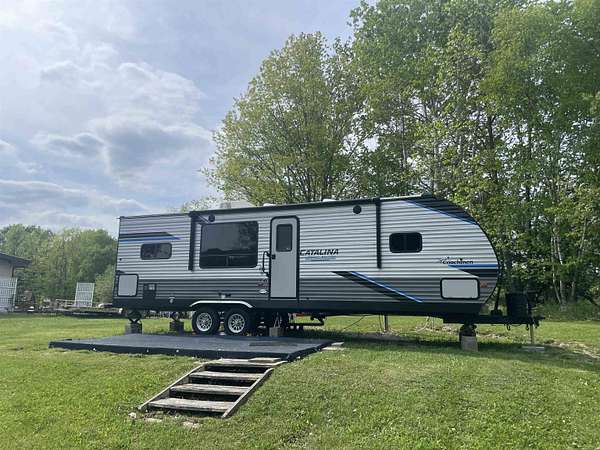 Great camping or building spot in Sugar Springs. Why search for a camping spot every holiday weekend when you can enjoy your own place? This site has all utilities, including sewer, well, and electricity, for convenient camping. Sugar Springs Championship 19-hole Golf Course is across the street with a view of the 5th tee. It is a perfect spot for golf enthusiasts. The back of the lot is treed and backs to private acreage. The 2022 Coachman Catalina Limited Addition Travel Trailer is set up and ready to enjoy! Sold separately for 31k. The travel trailer is like new, with a beautiful and functional kitchen, a modern full bath with an attractive shower, and a king-size bed in the bedroom. The couch and table break down into additional sleeping space, accommodating guests. Extras include an awning, outdoor shower, and outdoor fridge. Sugar Springs amenities include 2 All-Sports lakes with beaches, bathhouses, picnic areas, boat launches, and rental docks. Great boating, swimming, and fishing. Two beautiful golf courses, a heated indoor pool and fitness center, tennis courts, restaurant & pub, and more!