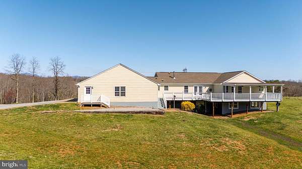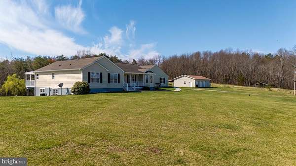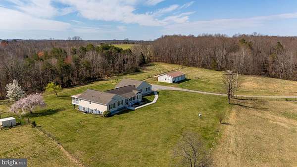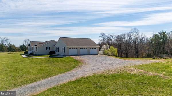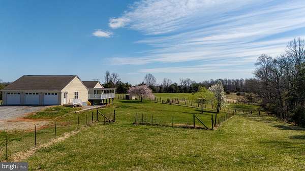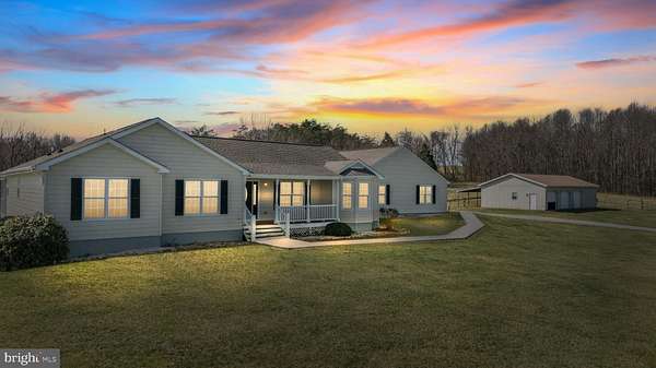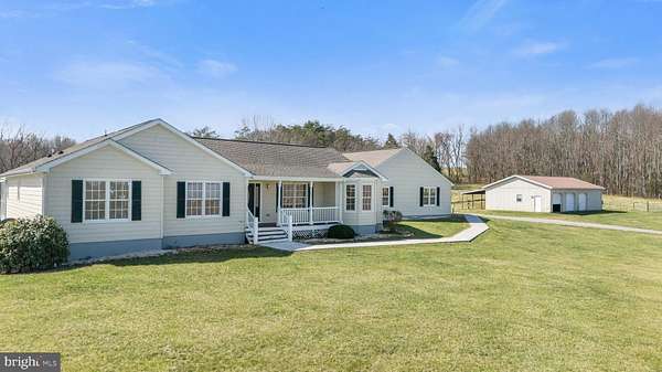 Welcome to your private country retreat! This stunning 5-bedroom, 6-bathroom rancher, built in 2005, is nestled on 80 acres of serene land featuring a peaceful creek, multiple outbuildings, and endless opportunities to enjoy the outdoors. Step into a spacious tiled foyer, where you'll immediately notice the warm hardwood floors that flow throughout the main living areas. To the right, a formal dining room offers the perfect space for gatherings. The large kitchen features an island, eat-in space, wood cabinetry, stainless steel refrigerator, new recessed lighting, and a spacious pantry. Enjoy the convenience of a centrally located laundry room-washer and dryer convey. The inviting living room boasts hardwood floors and a cozy gas fireplace with a mantle, perfect for relaxing nights at home. Freshly painted in 2025 with some updated fixtures, this home offers three spacious main-level bedrooms, all with ceiling fans. The primary suite is a true retreat, featuring two full bathrooms with tiled showers, a massive walk-in closet with shelving, and private access to a covered deck with ceiling fans-ideal for morning coffee while taking in the stunning views. The fully finished walk-out basement adds incredible flexibility with two newly renovated full bathrooms, two additional rooms, a full kitchenette, and laundry hookups-great for guests, in-laws, or additional living space. Outdoor living is just as impressive, blending charm with practical amenities throughout the property. Enjoy a freshly painted back deck with a propane line for your BBQ grill-perfect for entertaining-alongside a covered front porch ideal for quiet mornings or relaxing afternoons. The attached 3-car garage features concrete floors and built-in shelving for easy organization, while the detached 3-car garage adds even more functionality with an awning for covered storage, a pellet stove, a sink with running water, an additional refrigerator, and a beautifully updated full bath with a tiled shower. Multiple outbuildings with water access provide excellent potential for livestock, equipment storage, or hobby farming. For added convenience, the property also includes an RV hookup, plus a secondary well and septic system originally used for a mobile home during construction, which has since been removed. Whether you're looking for peace and privacy, a mini farm, or a spacious home with room for everyone-this one has it all. Once you're here, you won't want to leave! This property was an estate. Seller has never occupied the property and makes no warranties or representations as to its condition. Buyer to perform all due diligence. Seller to be held harmless for any errors, omissions, or misrepresentations.