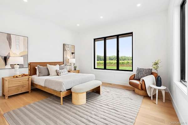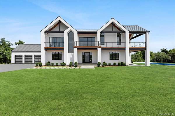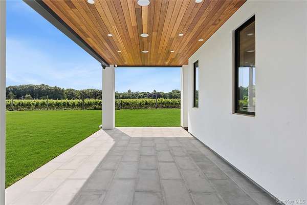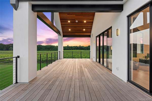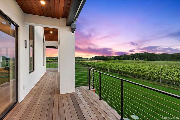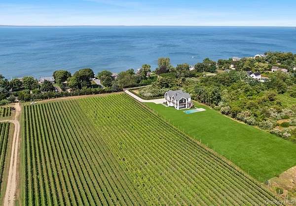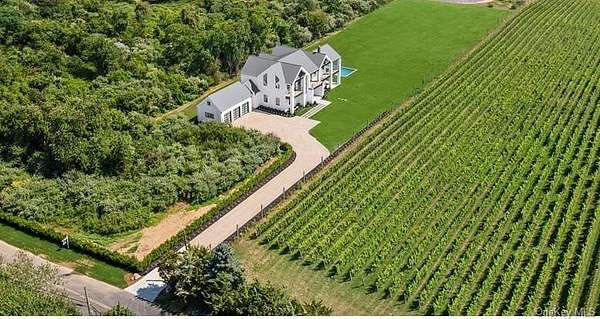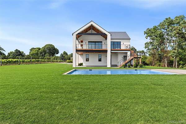 Experience the epitome of luxury living in this modern newly construction estate, a truly unique offering on the East End framed by breathtaking vineyard views. This newly constructed estate is move in ready with C/O in hand and spans an impressive 7,300 square feet, is a testament to meticulous craftsmanship and thoughtful design, where simplicity meets elegance. Upon arrival, you are greeted by a generous foyer leading to four luxurious ensuite guest bedrooms, each equipped with spa-inspired bathrooms, offering a haven of comfort. This level seamlessly flows into a side yard, featuring a covered patio and a heated gunite pool, offering sweeping views of manicured vineyards and farmland. A breezeway connects the side entry mudroom to a three-car garage, while the home's three levels are easily accessed by a floating staircase or elevator. The top level is a hub for unforgettable gatherings, boasting a custom chef's kitchen with creative seating and double islands. A cozy lounge area, adorned with a striking gas stone fireplace, complements this space. The expansive great room, complete with a grand dining area, features two sets of sliding doors that open to a wrap-around mahogany deck, framing the stunning vistas. The primary ensuite offers a private balcony, inviting fresh air and vineyard views, while the spa-inspired bathroom indulges with a soaking tub and double shower. Ample storage is provided in dual custom closets. The lower level hosts two additional bedrooms sharing a full bathroom, along with a versatile recreation space adaptable for a gym, studio, home theater, or wine storage. Steps from this area lead to the outside, connecting you with nature. Step outside to a 20'x 40' heated saltwater gunite pool, surrounded by a bluestone perimeter for lounging and relaxation and a full bathroom, conveniently located near the patio. The expansive yard presents limitless possibilities, from a boutique vineyard to horse paddocks, tennis courts, or gardens for farm-to-table cuisine and with town permissions, a bed and breakfast making the potential for this property truly inspiring. Located just moments from the gorgeous Long Island Sound beaches and where luxury meets tranquility in the heart of wine country.