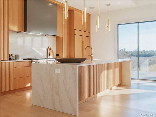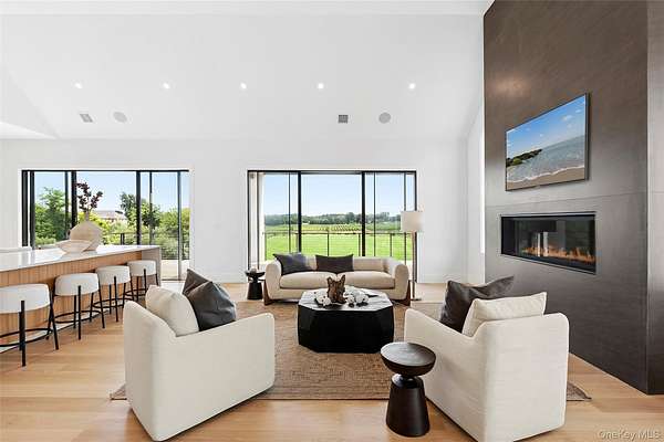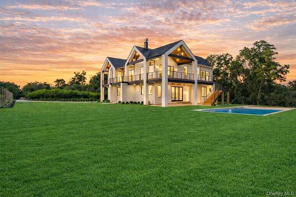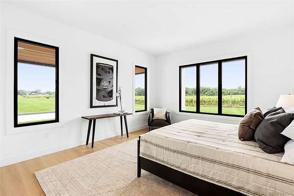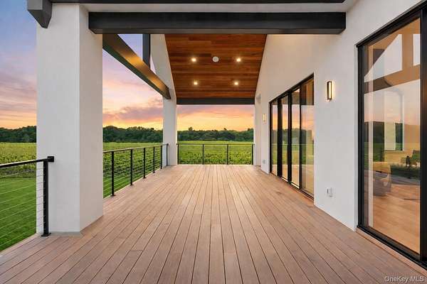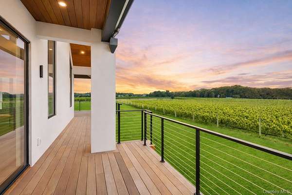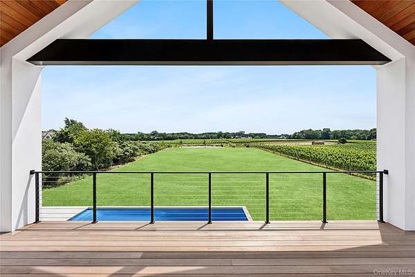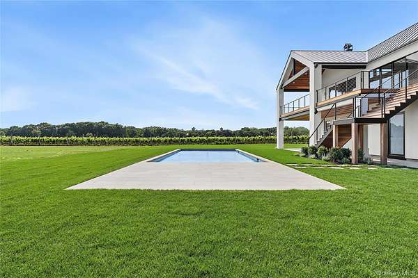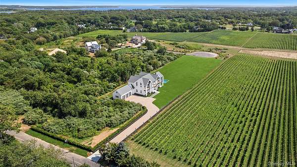 Soundview on the Vines presents a rare opportunity to own a new construction vineyard-side estate where modern architecture, refined craftsmanship, and the natural beauty of the North Fork converge. Spanning approximately 7,300SF and situated on nearly 2 acres, this exceptional residence has been thoughtfully designed to balance grand-scale entertaining with relaxed, everyday luxury. Upon arrival, a striking foyer sets the tone, leading into a private guest wing featuring multiple ensuite bedrooms, each appointed with spa-inspired baths and generous proportions. This level opens seamlessly to the outdoors, where the covered patio and a heated 20x40 saltwater gunite pool overlook rolling vineyards and open farmland, creating a tranquil backdrop for both intimate gatherings and large-scale entertaining. A well-planned breezeway connecting the mudroom to a three-car garage, while a floating staircase and elevator provide effortless access to all three levels of the home. The upper level serves as the heart of the residence with incredible views and natural light. A custom chef's kitchen anchors the space, complete with dual islands and premium finishes, flowing naturally into a sophisticated lounge with a statement gas fireplace and an expansive great room ideal for hosting. Walls of glass and multiple sliding doors open to a wrap-around mahogany deck, capturing sweeping vineyard views and allowing indoor and outdoor living to merge beautifully. The primary suite is a private retreat, featuring its own balcony, serene views across the vines, dual custom closets, and a spa-caliber bath with soaking tub and oversized double shower. The lower level offers remarkable flexibility, with additional bedrooms, a full bath, and a generous recreation area adaptable to a gym, media room, studio, or wine storage. Direct outdoor access enhances the home's connection to its surroundings, while the landscaped grounds provide ample room for future vision-whether it be an outdoor kitchen, accessory building, tennis/pickle ball court, curated gardens and more! Ideally positioned just moments from Long Island Sound beaches and the North Fork's celebrated vineyards, Soundview on the Vines is a truly inspiring estate where luxury, privacy, and lifestyle come together in one extraordinary setting.