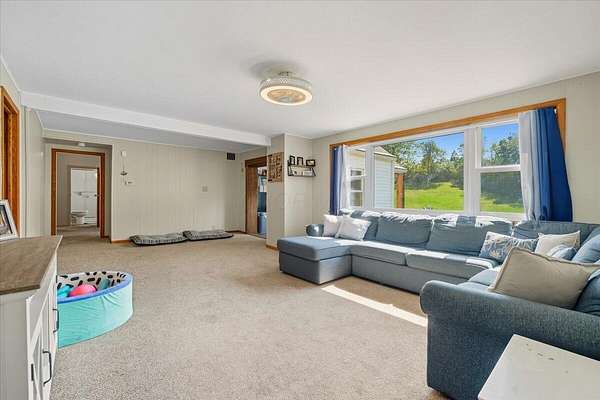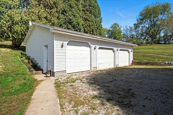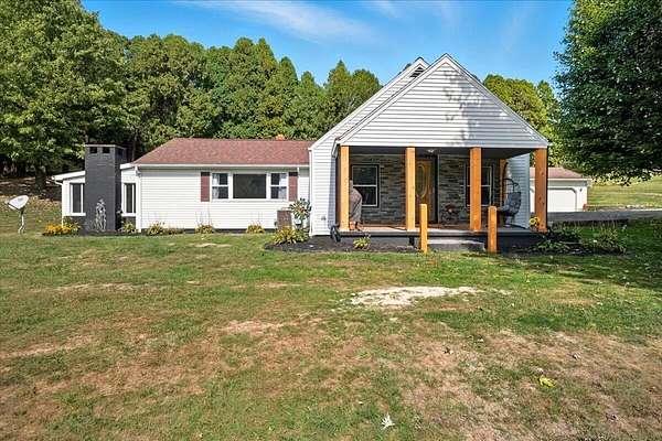 Motivated sellers invite you to discover your country retreat! This 4-bedroom ranch home is nestled on 9.85 acres in Coshocton County and offers the perfect blend of privacy, recreation, and modern updates. Enjoy evenings by the 1/4-acre stocked pond (15 ft. deep at the center), raise animals in the 20x34 two-level barn and chicken coop, or unwind in the spacious sunroom with sweeping western views. Inside, you'll find a fully renovated kitchen, updated electrical with a new breaker box (2024), plus several major 2025 upgrades including a new transformer, hot water tank, and AC condenser. The 3-car garage provides plenty of storage and parking. A unique bonus to this property is the auxiliary home, complete with its own electric meter. Designed as a guest or in-law suite, this unfinished space offers endless possibilities-finish it to your taste and create a perfect guesthouse, Airbnb, or multigenerational living option.