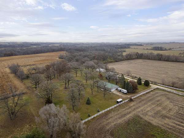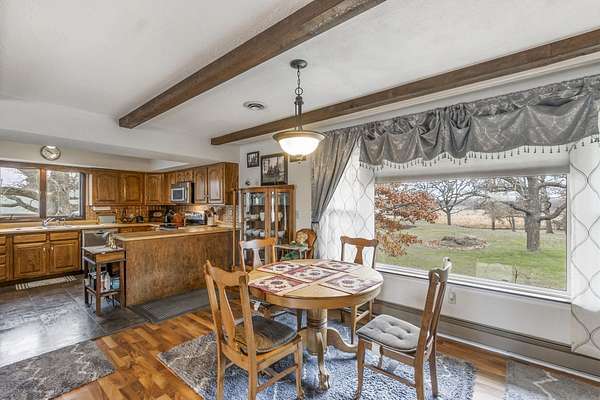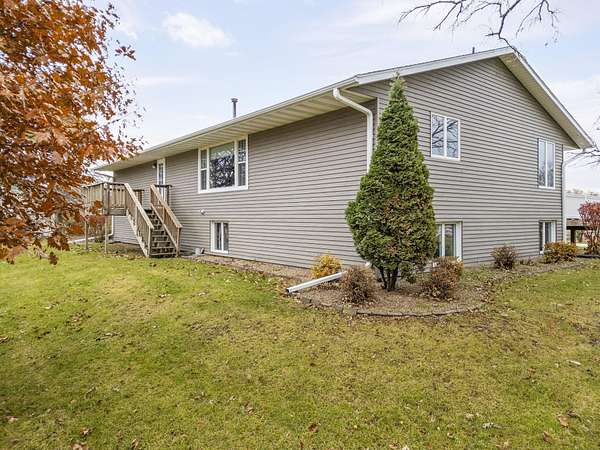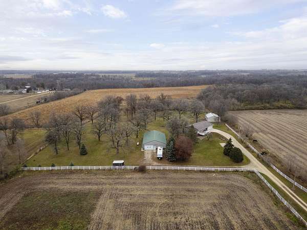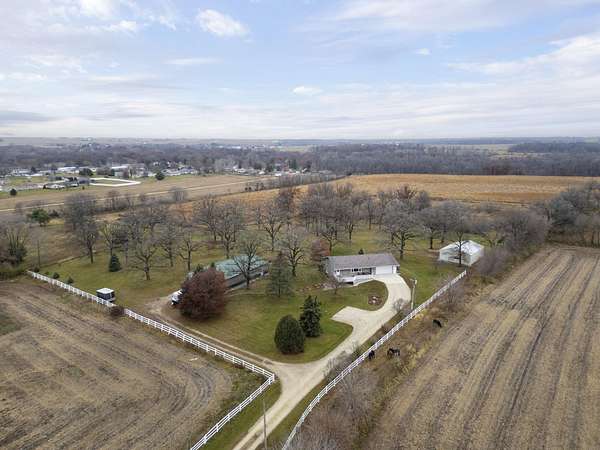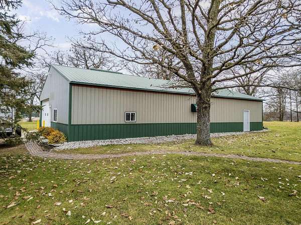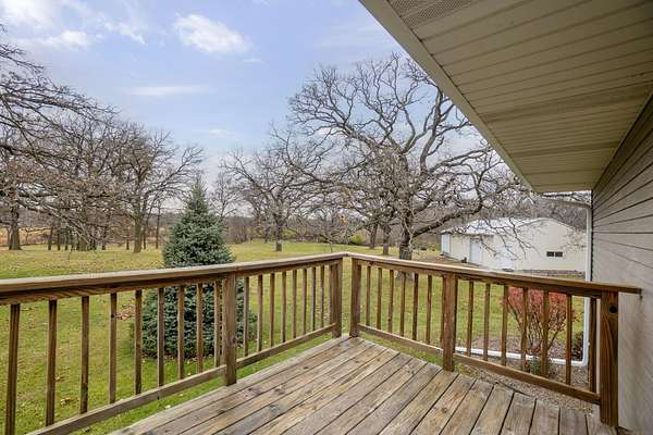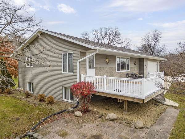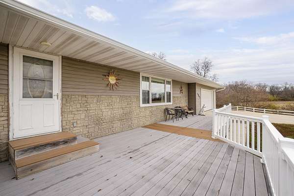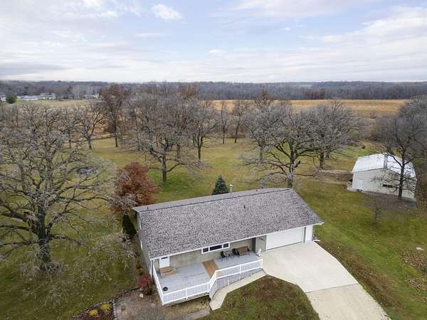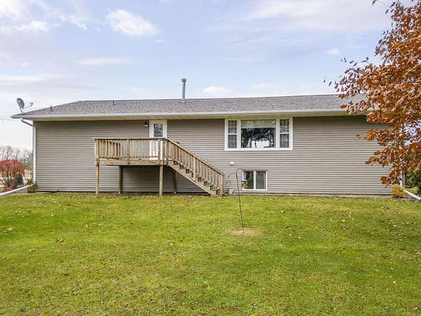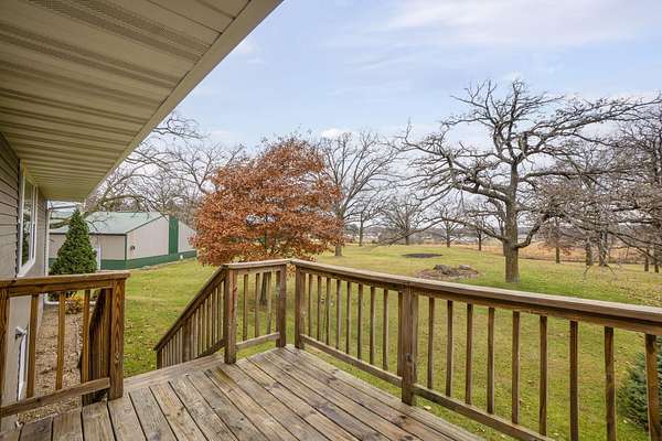 Discover the perfect blend of country serenity and modern convenience at this inviting acreage on the edge of town. Nestled on 4 picturesque acres, this spacious raised ranch offers 2,355 sq. ft. of open living space, featuring 3 comfortable bedrooms and 2.5 updated bathrooms. Enjoy scenic views and privacy, set back from Hwy C-57 in a tranquil, park-like setting. Step inside to a welcoming main floor with two generous entryways, a large living room anchored by a cozy fireplace, and a bright kitchen with classic oak cabinetry. The adjoining dining area is framed by expansive windows, perfect for watching wildlife roam the grounds. Updated laminate flooring flows throughout, including a convenient 3/4 bath with shower and a half bath near the garage entry. The lower level provides three restful bedrooms, a full bath, a laundry room, and a versatile bonus room beneath the garage-ideal for storage or hobbies. Outside, you'll find an attached two-car garage, a newer roof, durable aluminum siding, and two spacious decks for relaxing or entertaining. Two versatile outbuildings expand your possibilities: a 40 x 64 building with a paint booth, workshop, office space, water, and heat; and a 32 x 44 pole-frame building with both concrete and gravel flooring plus an overhead door-perfect for a shop, extra vehicles, or storage. This property is a true retreat, offering room to spread out and enjoy the freedom of country living, while remaining close to town amenities. Experience comfort, charm, and functionality in a home designed for both relaxation and productivity.