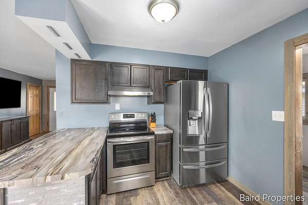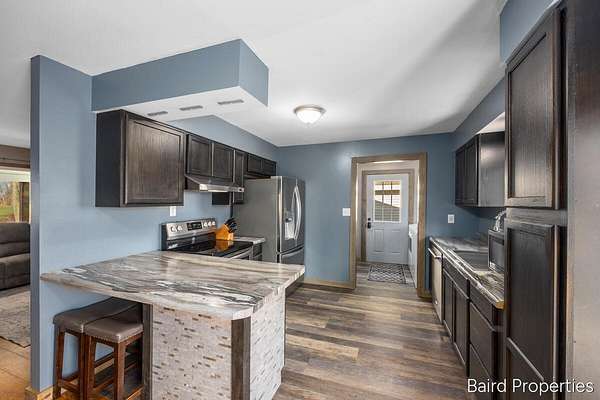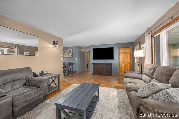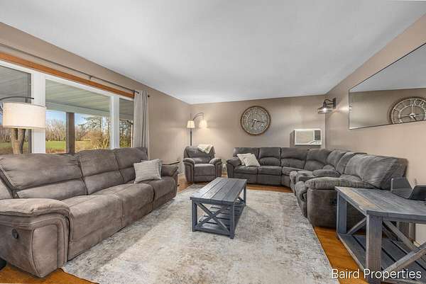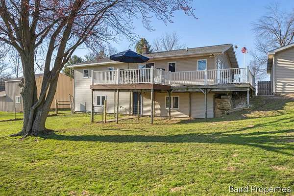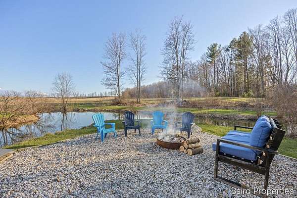 Introducing this well-maintained cozy ranch home quietly nestled on 2 beautiful acres. Enjoy plenty of updates including a spacious kitchen with updated cabinets, countertops and flooring. Appliances remaining for added value. Dining room with access to a wrap-a-round composite decking and a fenced backyard. Living room with wood plank flooring and an absolute gem of a very large master bedroom suite with walk-in closet and private bath! Additional amenities include finished family room basement, a huge garage for up to 4 vehicles, a 24x32 pole barn, and a private fish stocked pond with a fun cross over bridge to a cozy campfire island! Additional updates include windows, roof, electrical, septic drainfield, rain gutters, interior doors, trim pkg, bathrooms, paint, appliances, and more! Covered front porch, well maintained County Road, and 10 minutes to downtown Pentwater and the beach on Lake Michigan. Don't miss out on this one! Easy to show! Schedule today!