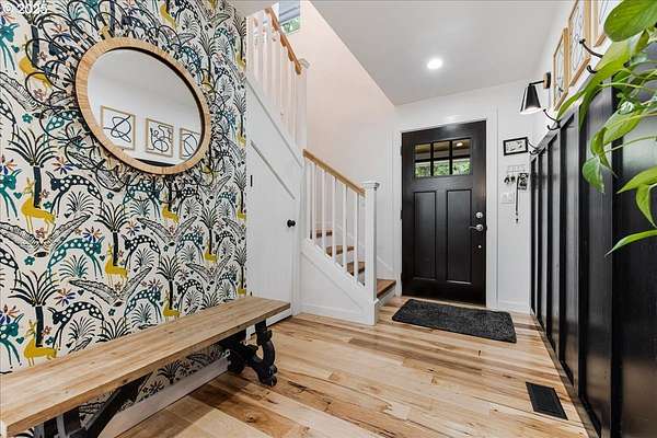 Charming and fully remodeled farmhouse on 1.91 private acres! Stunning Mt. Hood views off the back deck, primary bedroom and from the primary bathroom. This 4-bedroom, 2-bath home blends modern comfort with timeless character. The main level showcases gorgeous hickory hardwood floors, while the upstairs offers brand-new carpet for cozy comfort. Light-filled living spaces flow into a gourmet kitchen with new appliances, custom cabinetry, and stylish finishes.The spacious primary suite is a true retreat with a huge walk-in closet, luxurious clawfoot soaking tub, and walk-in tiled shower. Recent updates include a newer roof, updated furnace, and quality finishes throughout, offering peace of mind and move-in readiness.Outdoor living is just as inviting with a welcoming covered front porch featuring a cedar ceiling, a Trex deck off the back, and a firepit perfect for gatherings. The property is fenced and cross-fenced, offering ideal space for animals. A small barn provides room for chickens, goats, or hobbies, while the large garden area allows you to grow your own produce. Surrounded by trees and privacy, this property offers the perfect blend of comfort, charm, and country living.